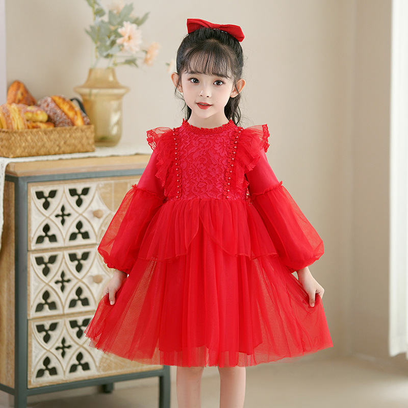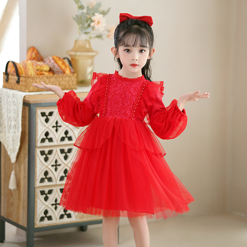아동복 여아 드레스 2025 봄 여름 신상 레이스 어린이 공주 드레스 예식 레드 아기 공연 드레스