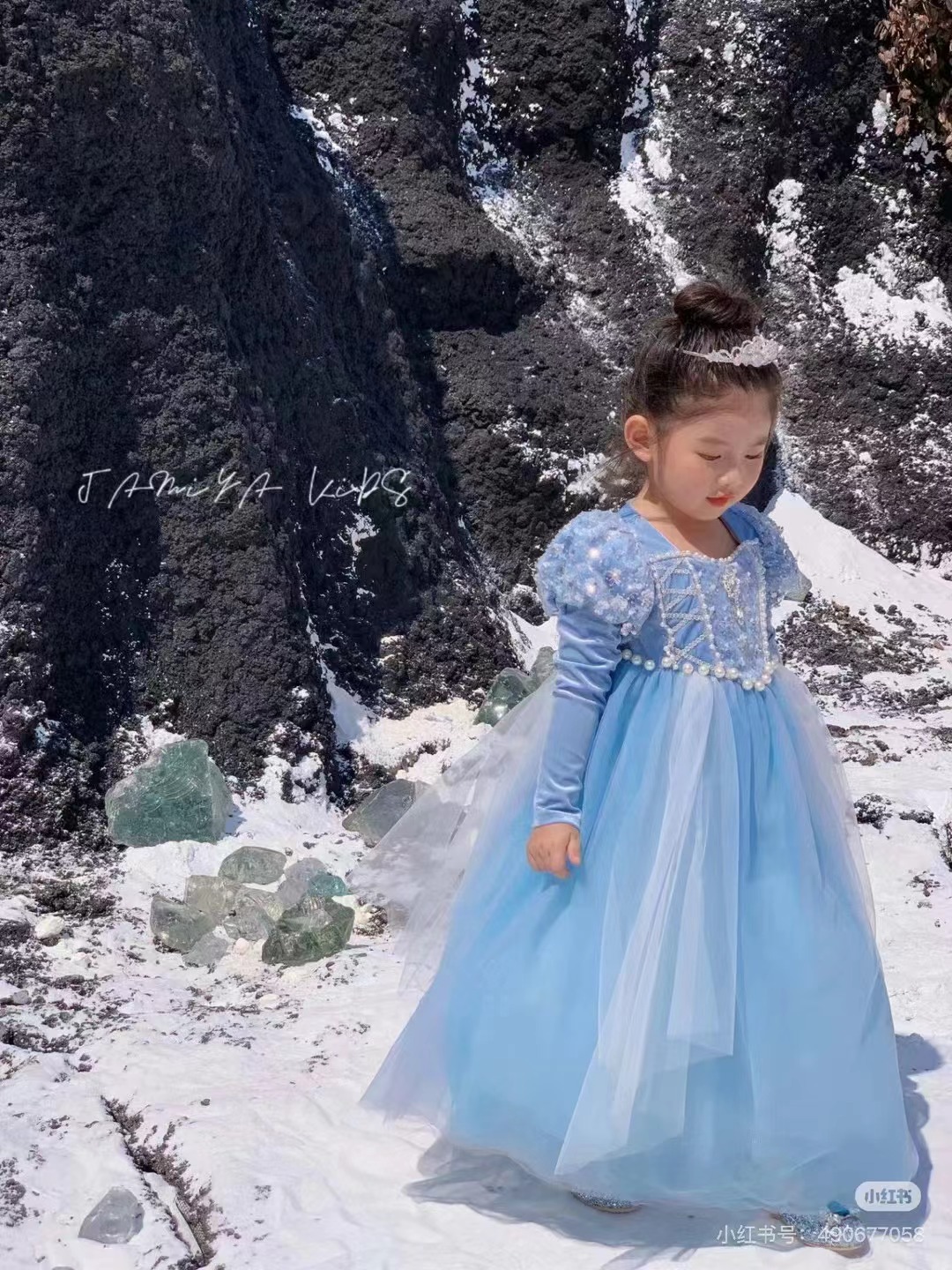글로우 아이샤 공주 드레스 소녀 정품 냉동 아이샤 가을 드레스 드레스 어린이 생일 드레스