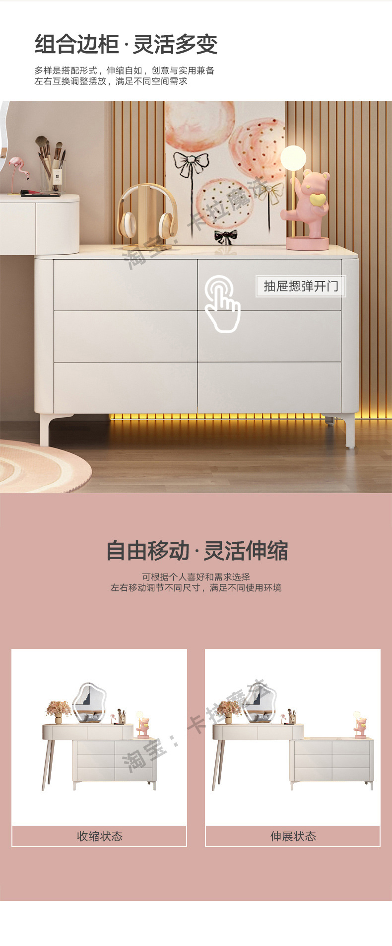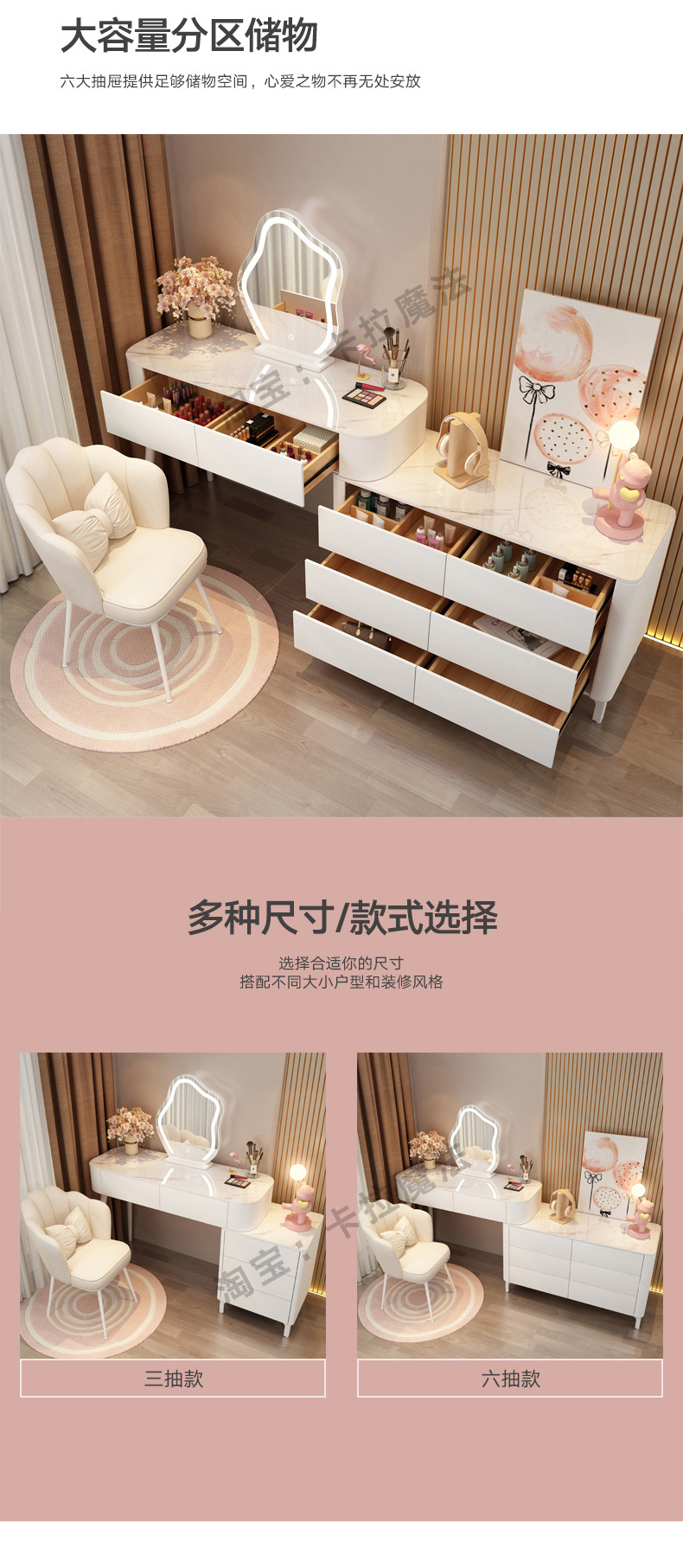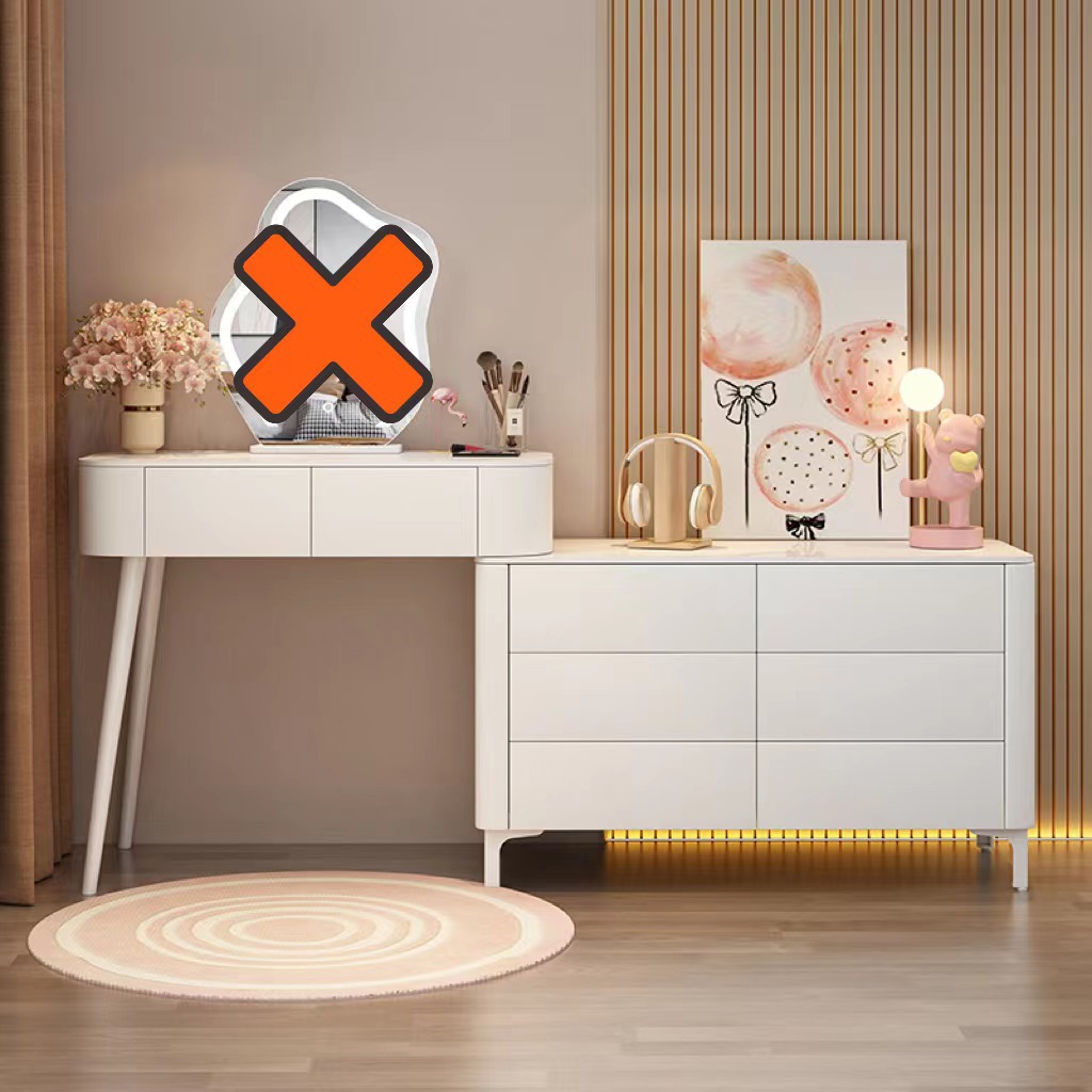 • 흰색 80cm 테이블 + 6 층 캐비닛 + 구름 거울 + 꽃잎 의자