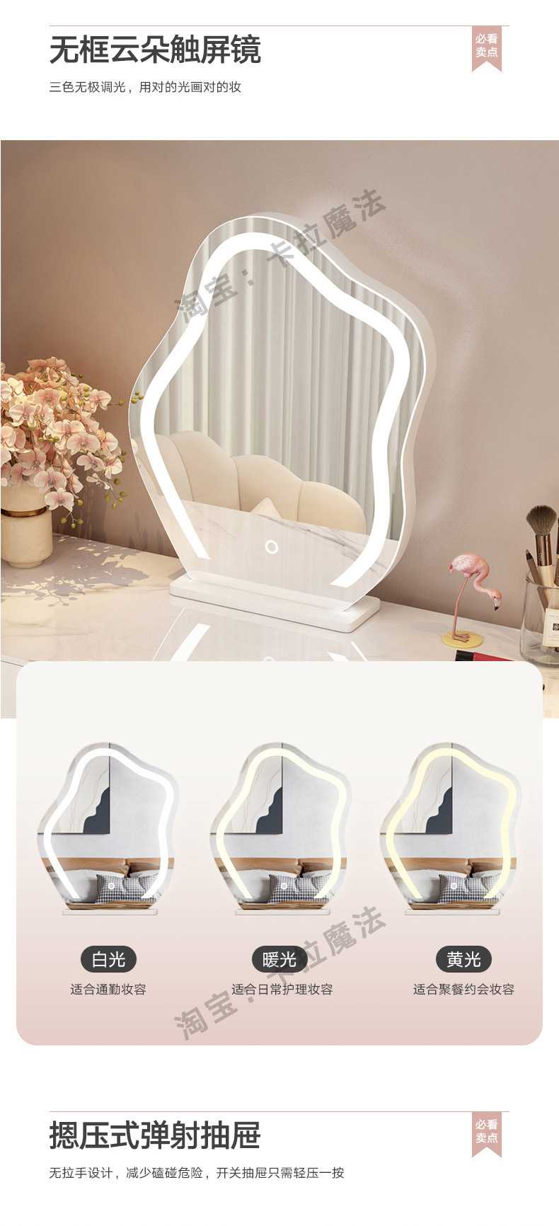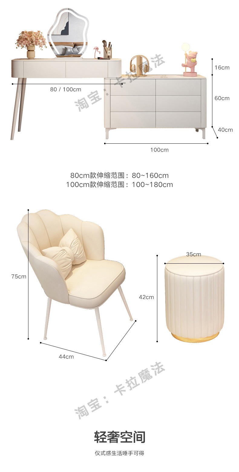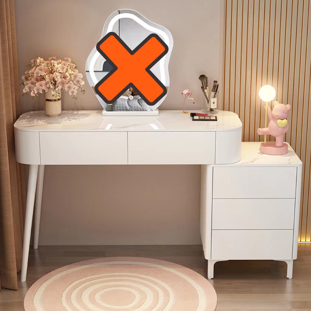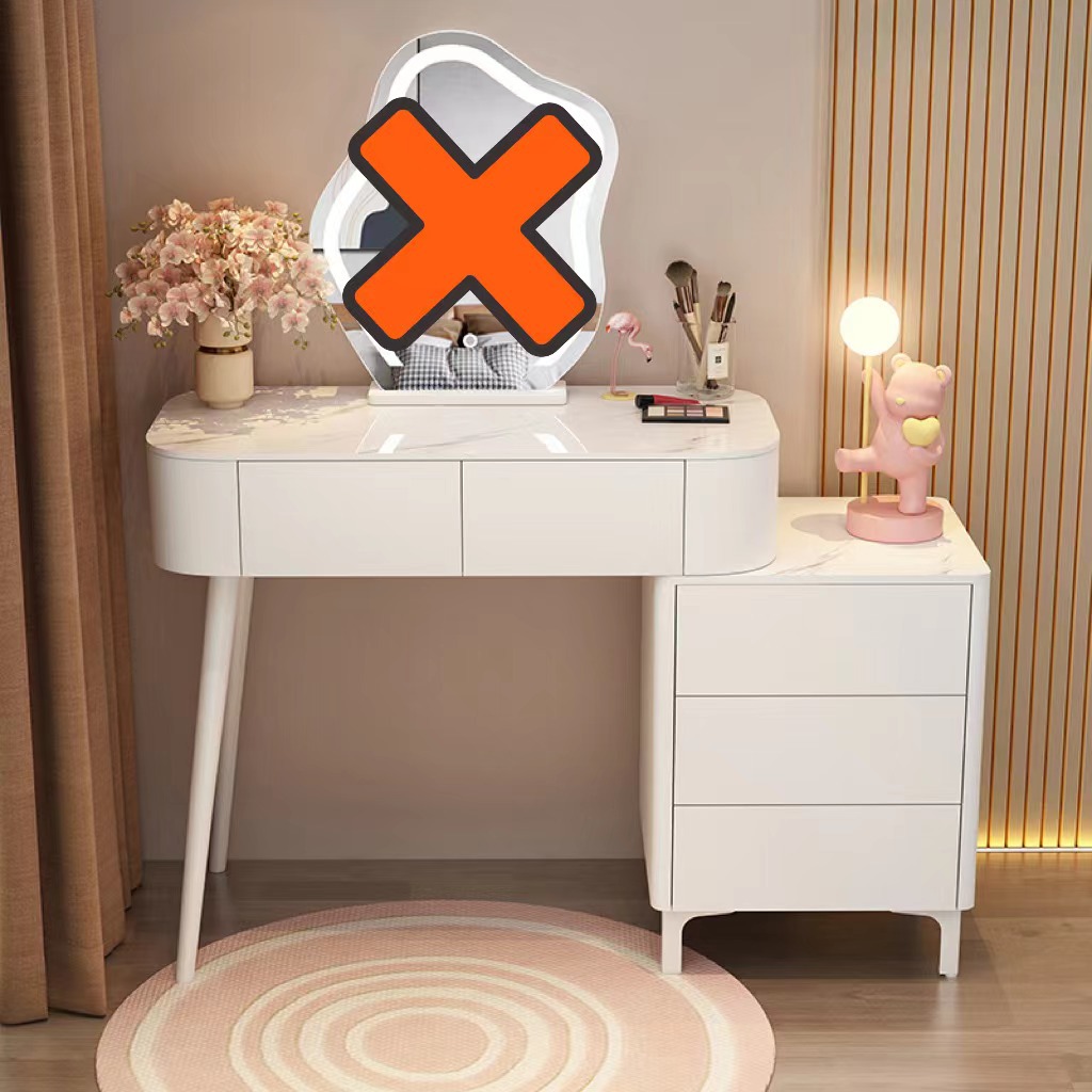 • 흰색 80cm 테이블 + 3 층 캐비닛 + 구름 거울 + 꽃잎 의자