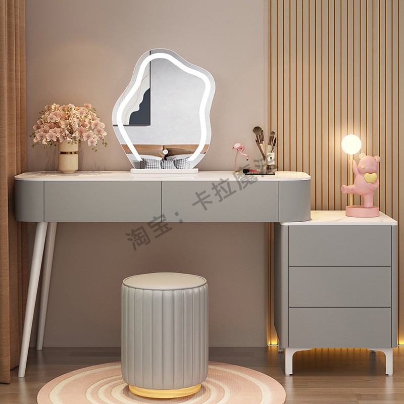 • 회색 120cm 테이블 + 3 층 캐비닛 + 구름 거울 + 회색 꽃잎 의자