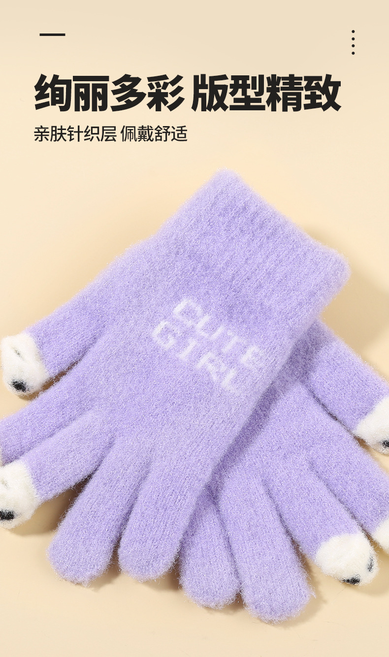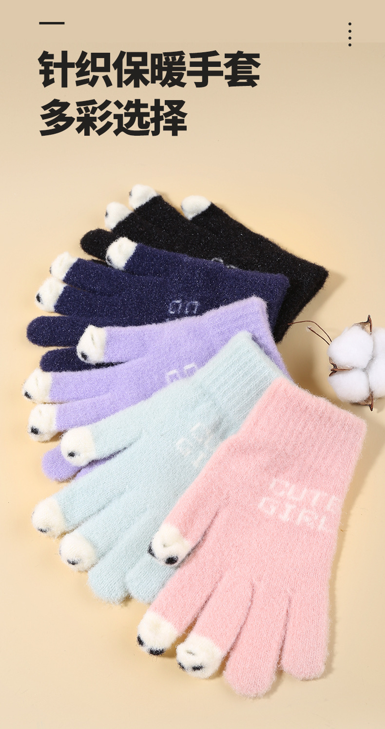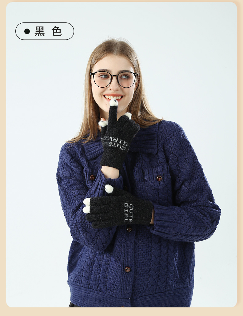 도매 겨울 따뜻한 장갑 숙녀 만화 귀여운 핑거리스 플러스 벨벳 장갑 터치 스크린 학생 쓰기 니트 장갑스토어 가기