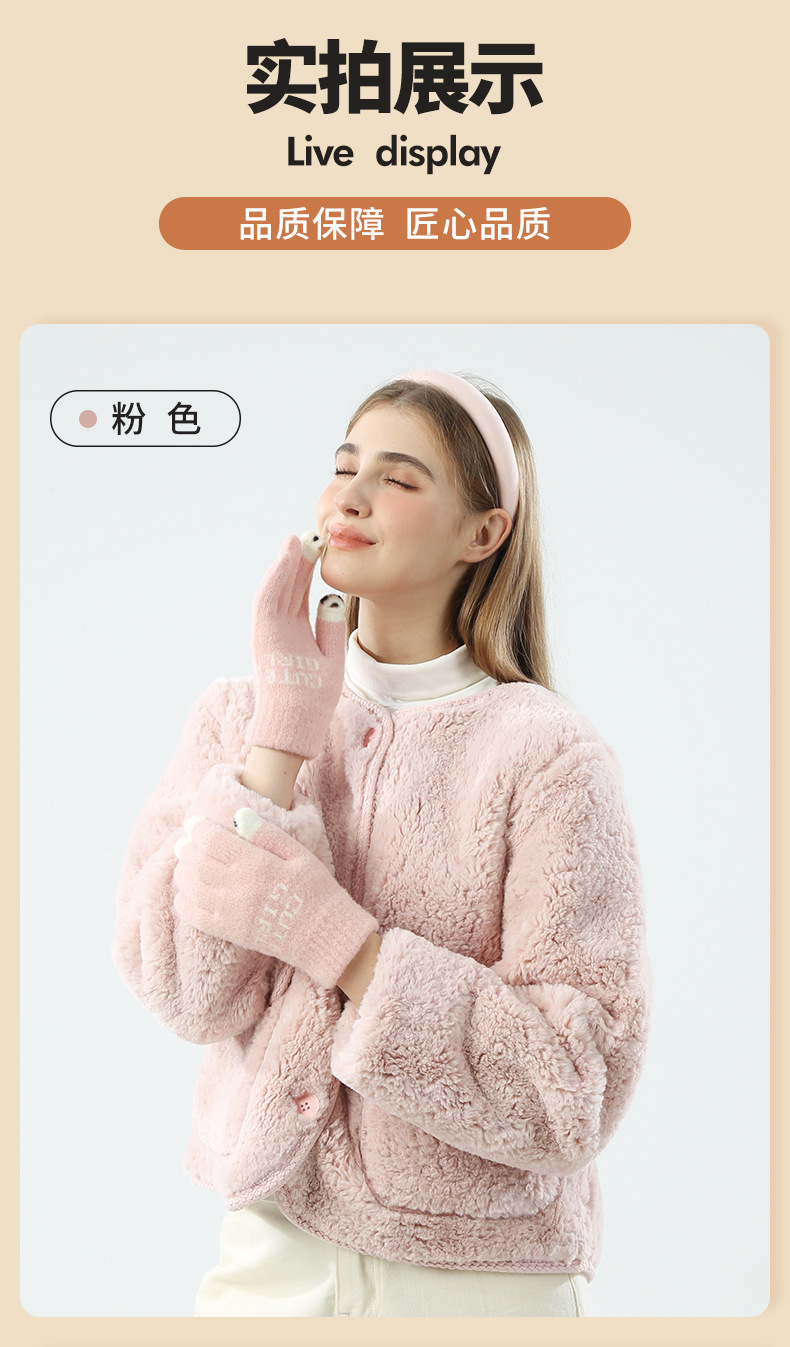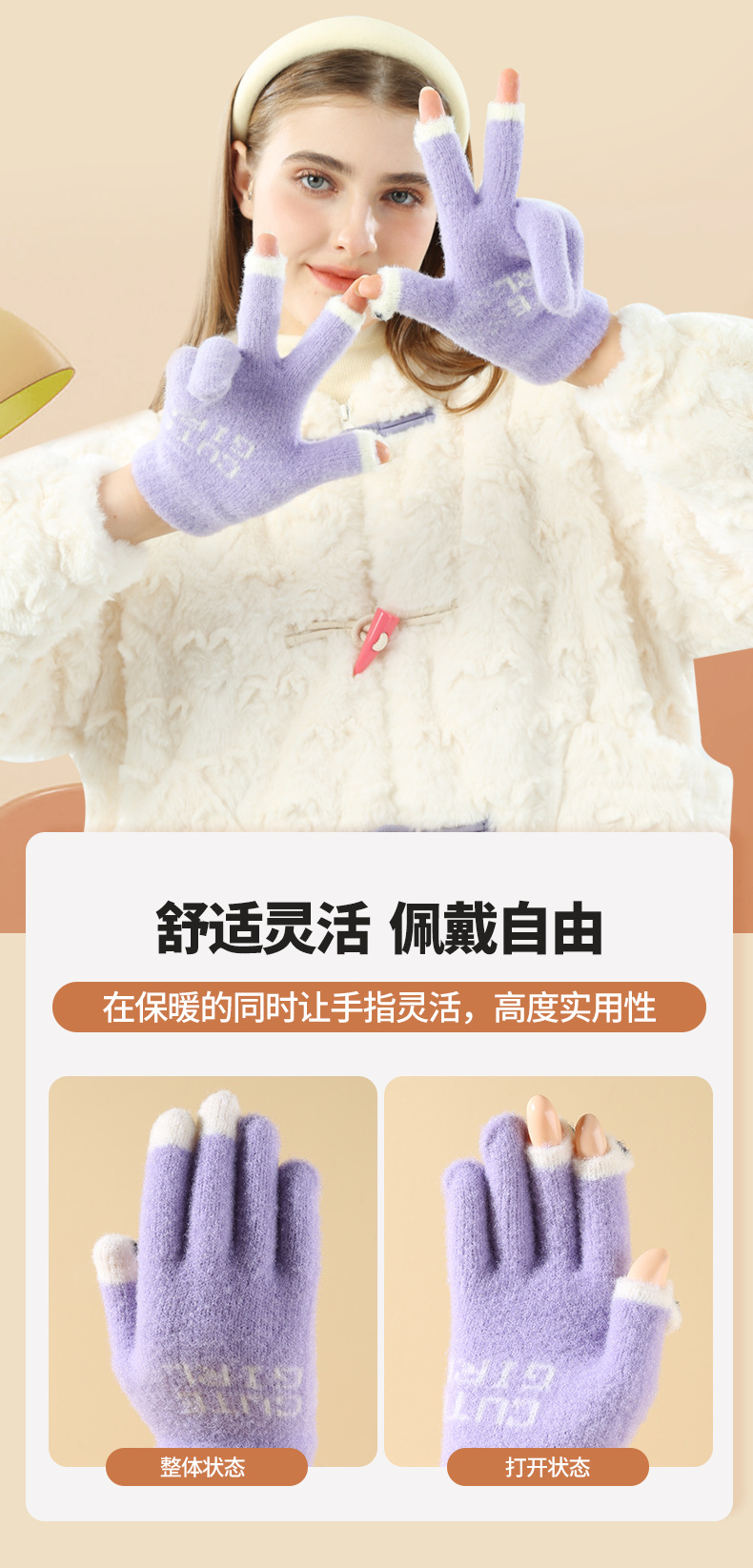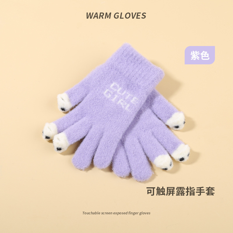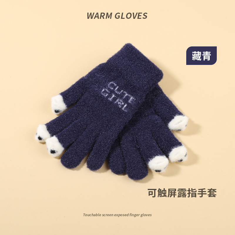 도매 겨울 따뜻한 장갑 숙녀 만화 귀여운 핑거리스 플러스 벨벳 장갑 터치 스크린 학생 쓰기 니트 장갑스토어 가기