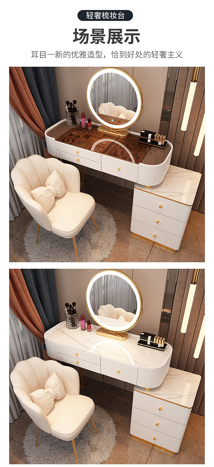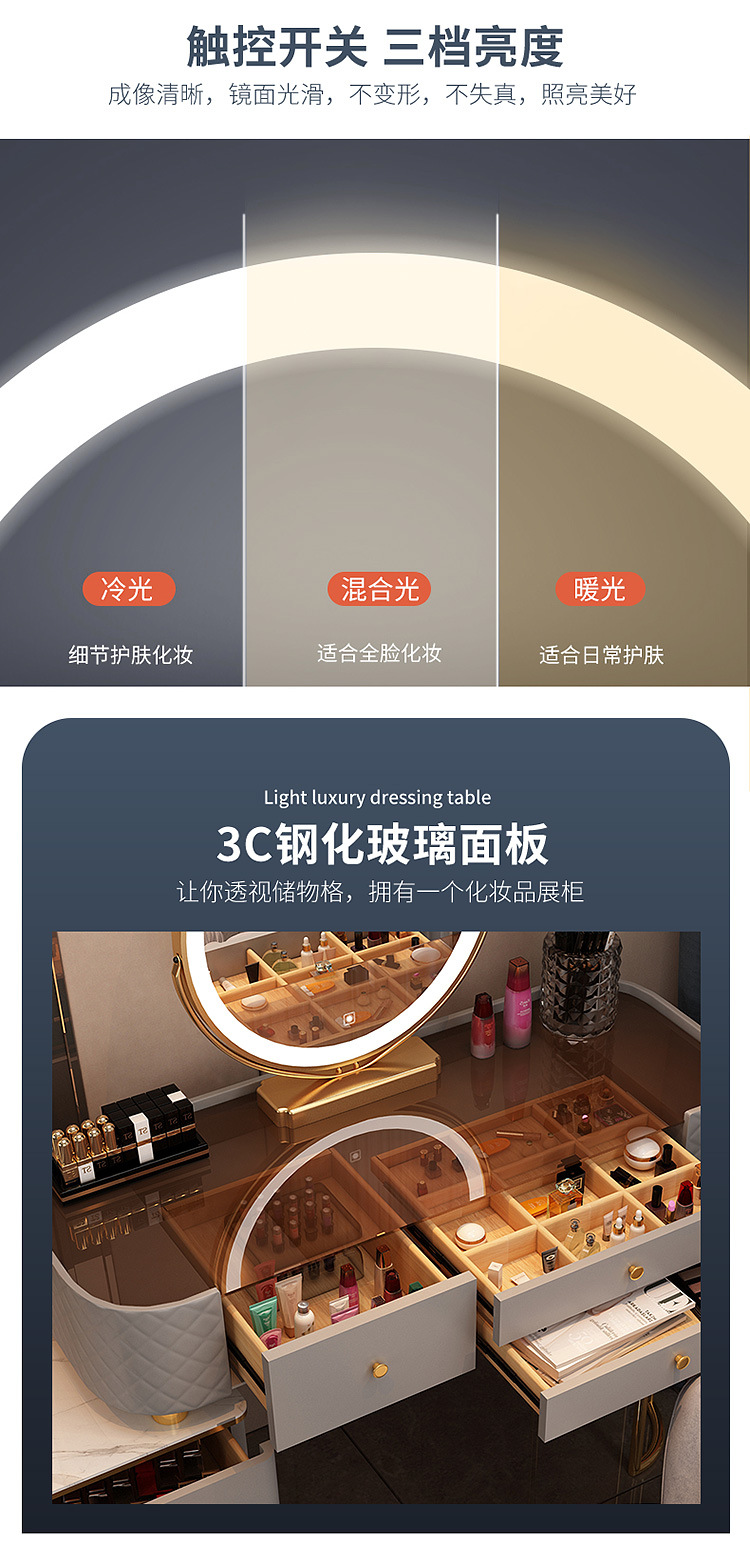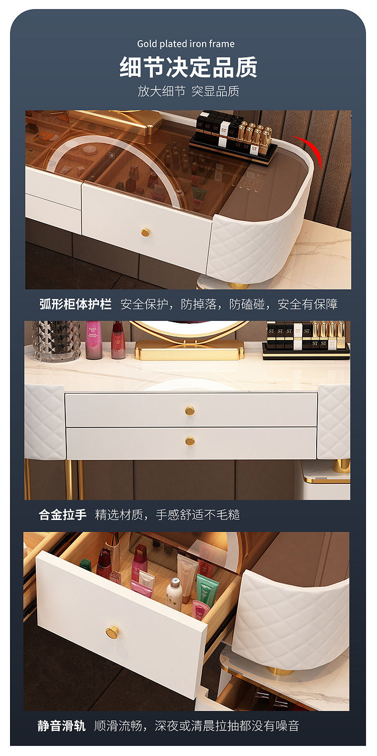 침실 메이크업 테이블 작은 가정용 감각 캐비닛 아파트 스타일 현대 테이블 고급 통합 메이크업 테이블 바위 작은 아파트 플레이트 럭셔리 간단한 보관