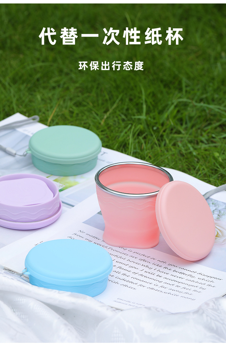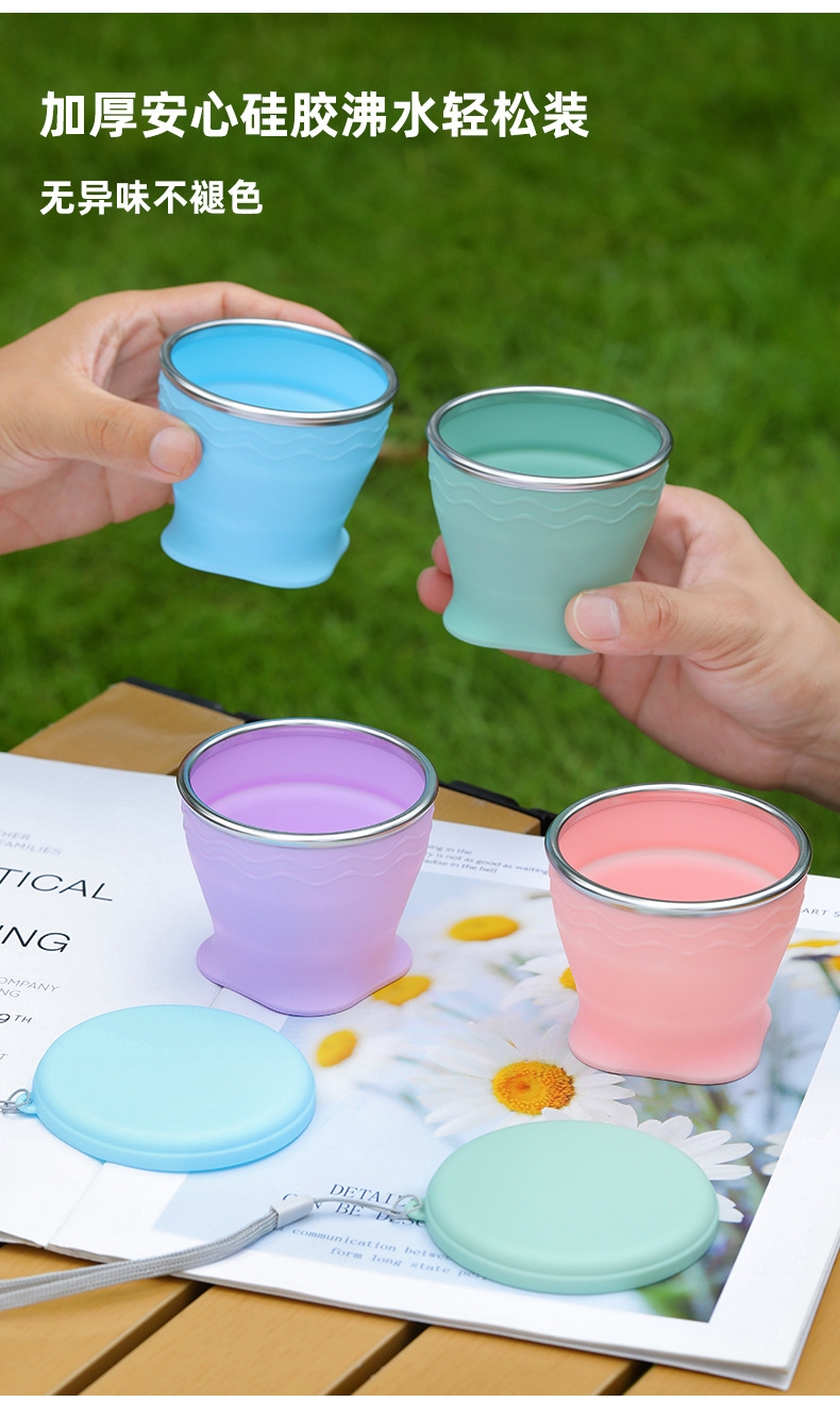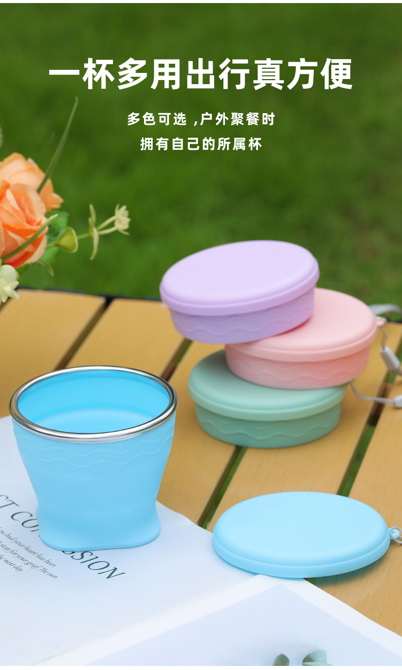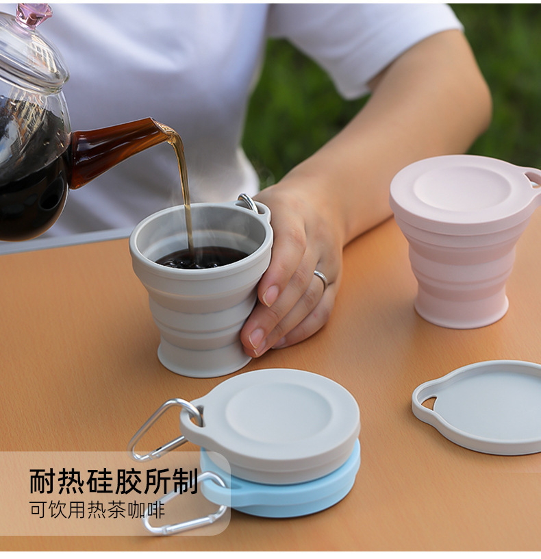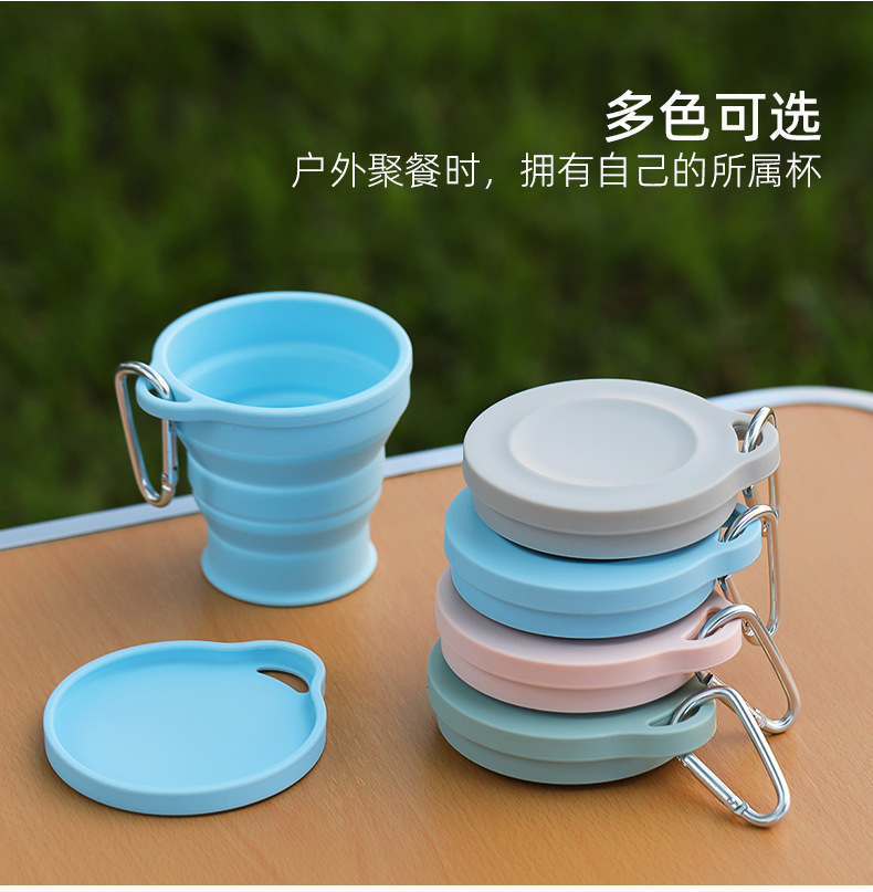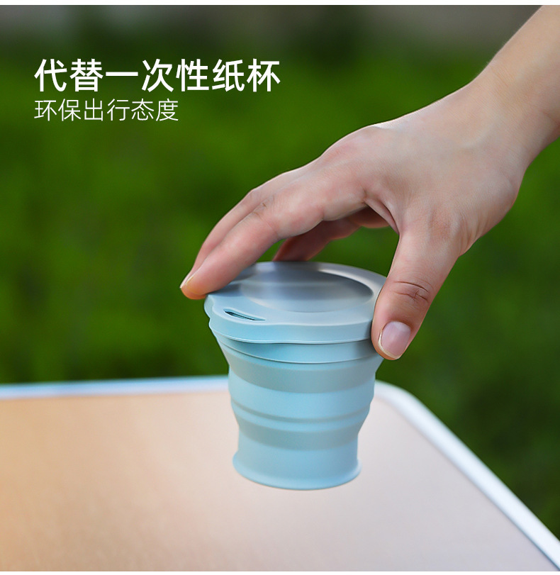 실리콘 접는 컵 휴대용 야외 여행 환경 보호 컵 판촉 선물 뚜껑 개폐식 주전자가있는 물 컵