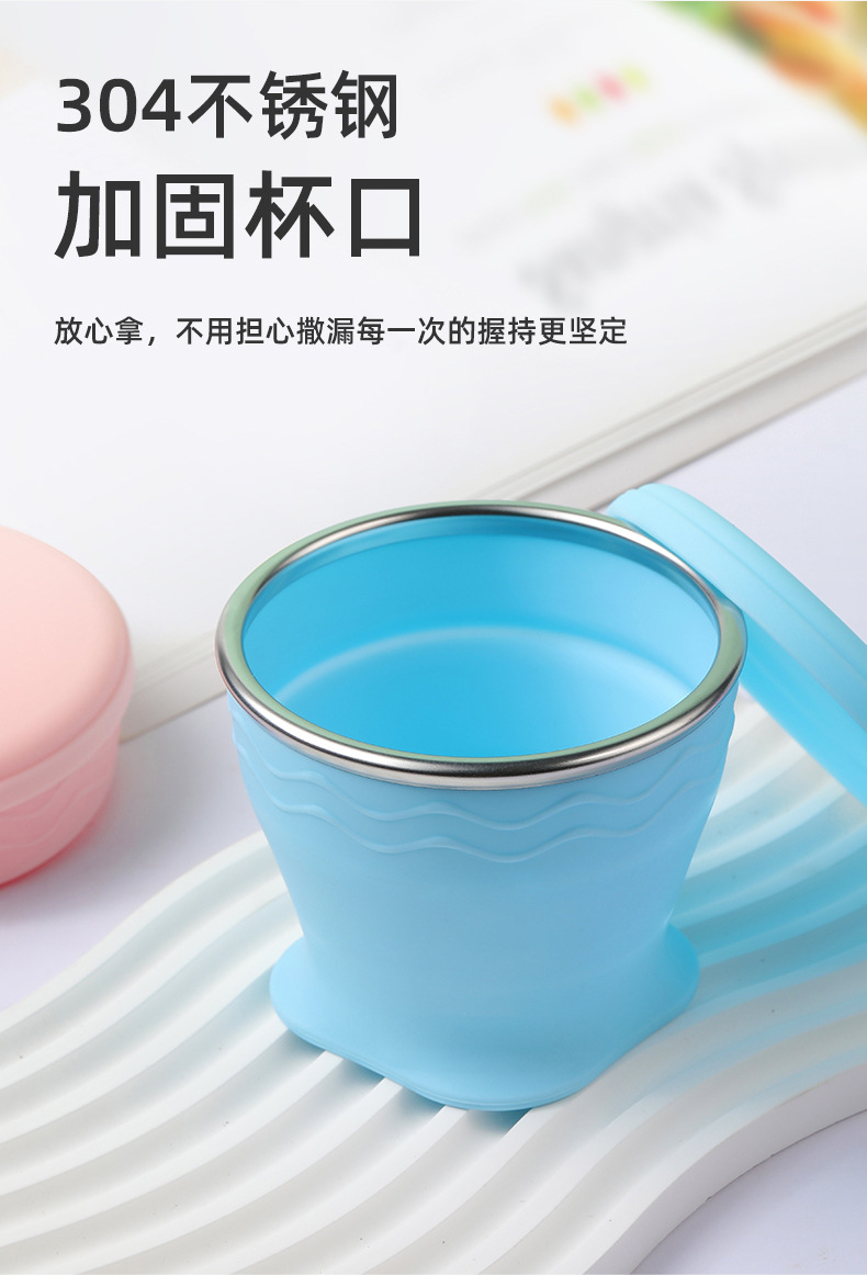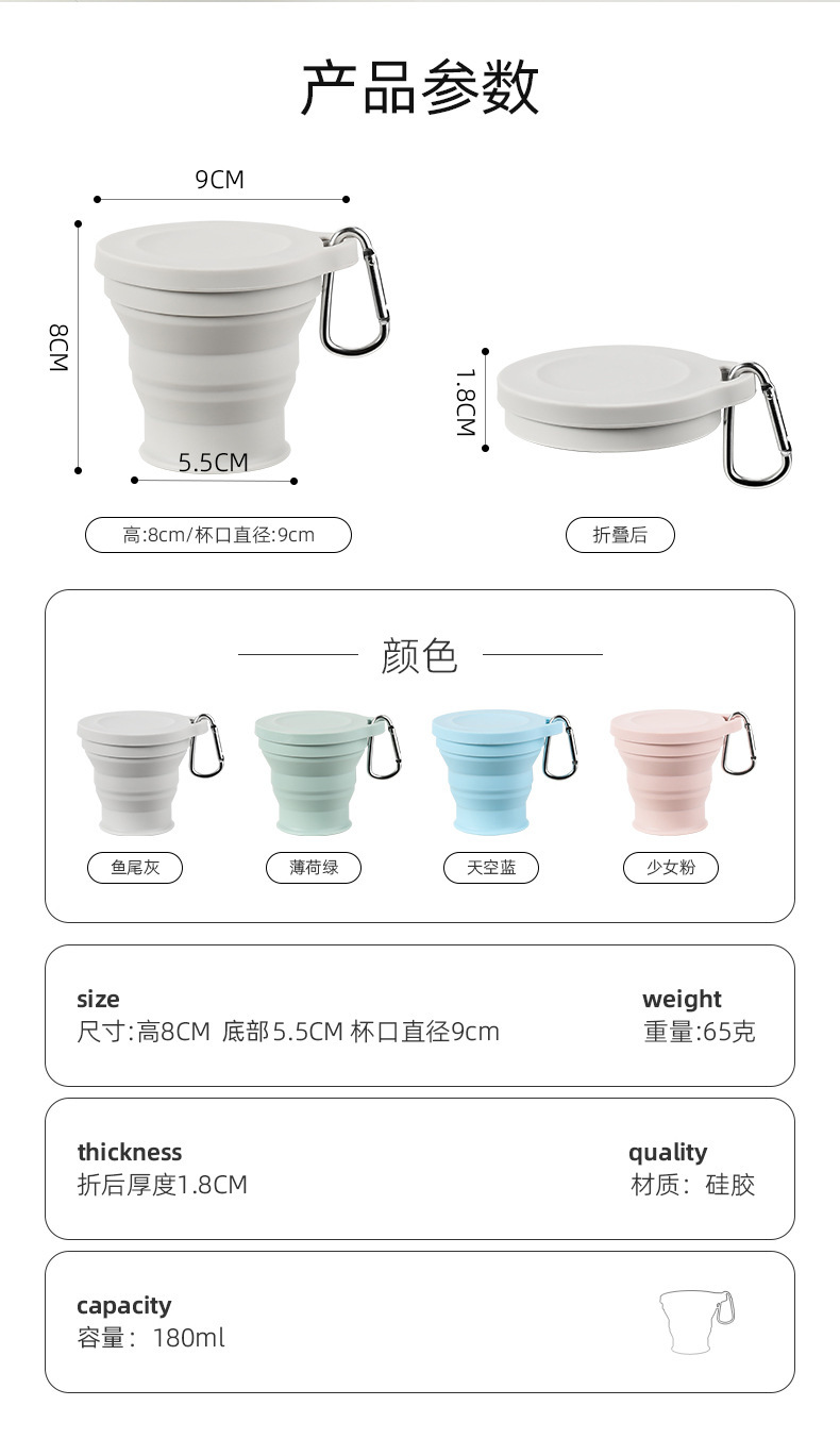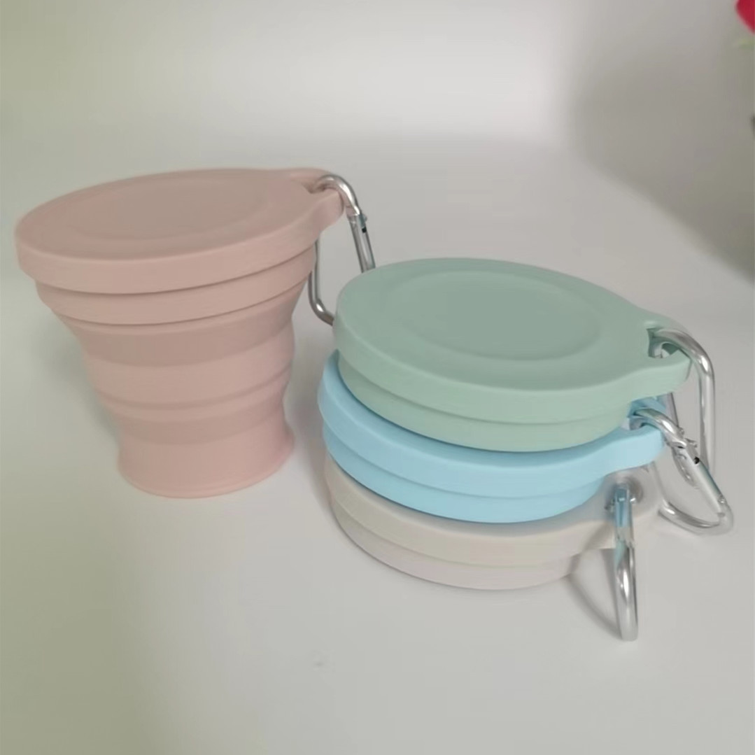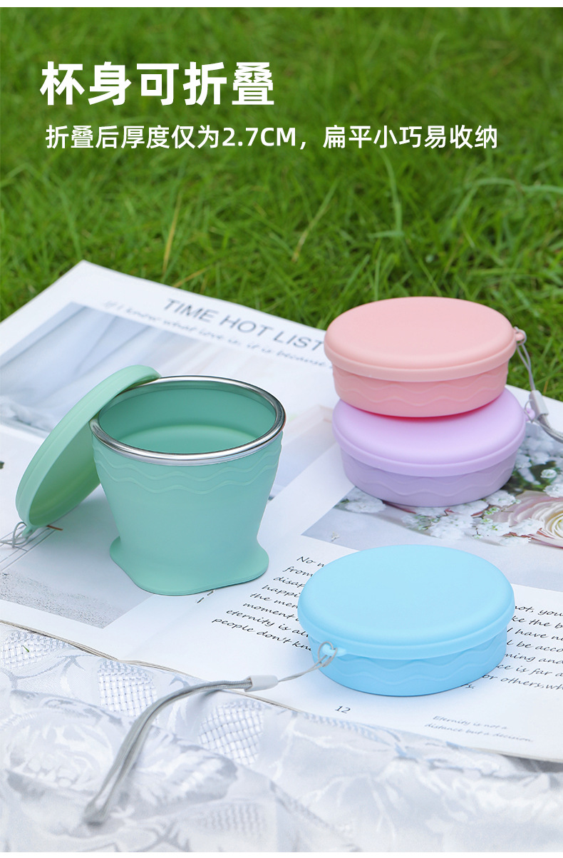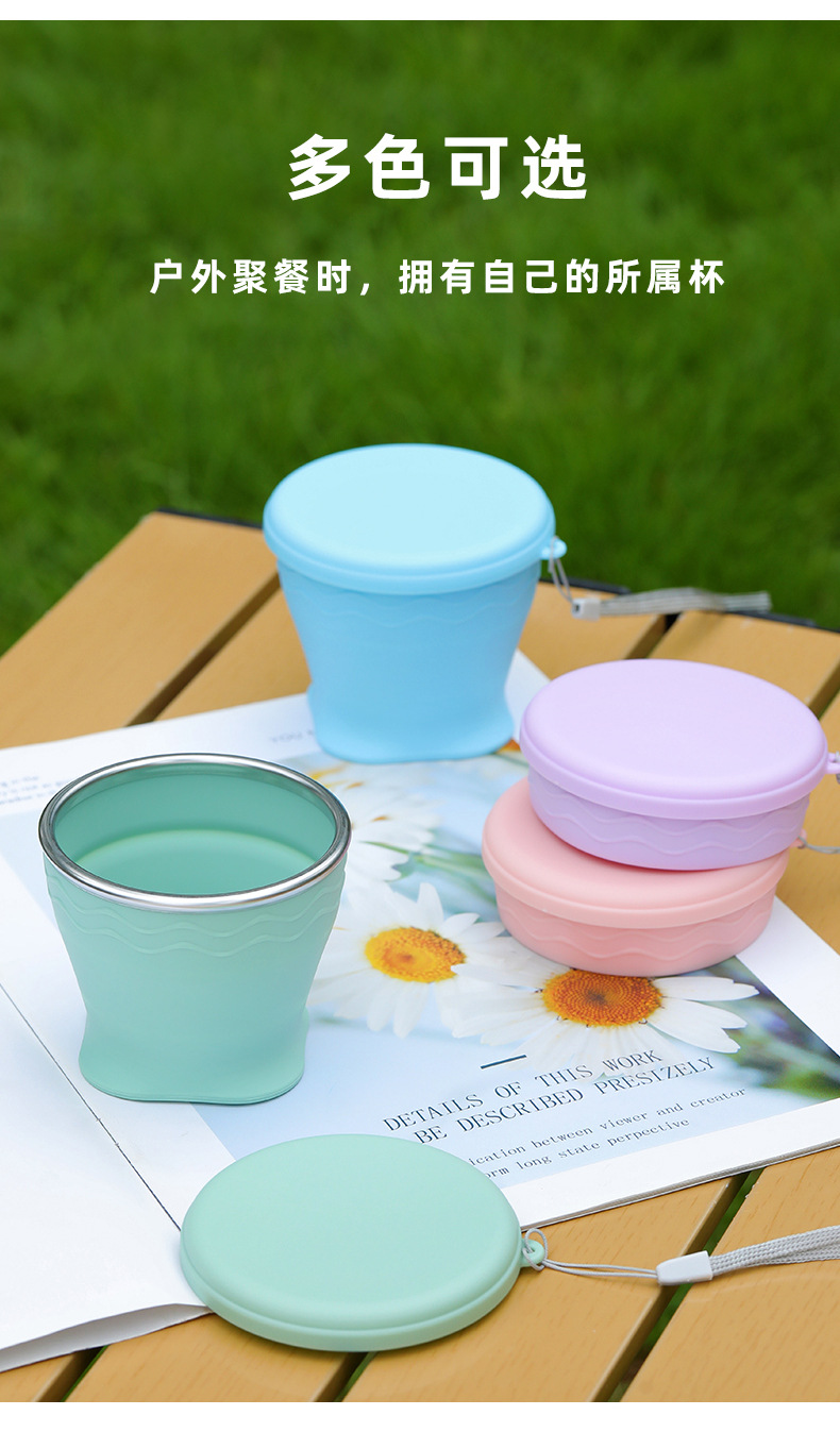 실리콘 접는 컵 휴대용 야외 여행 환경 보호 컵 판촉 선물 뚜껑 개폐식 주전자가있는 물 컵