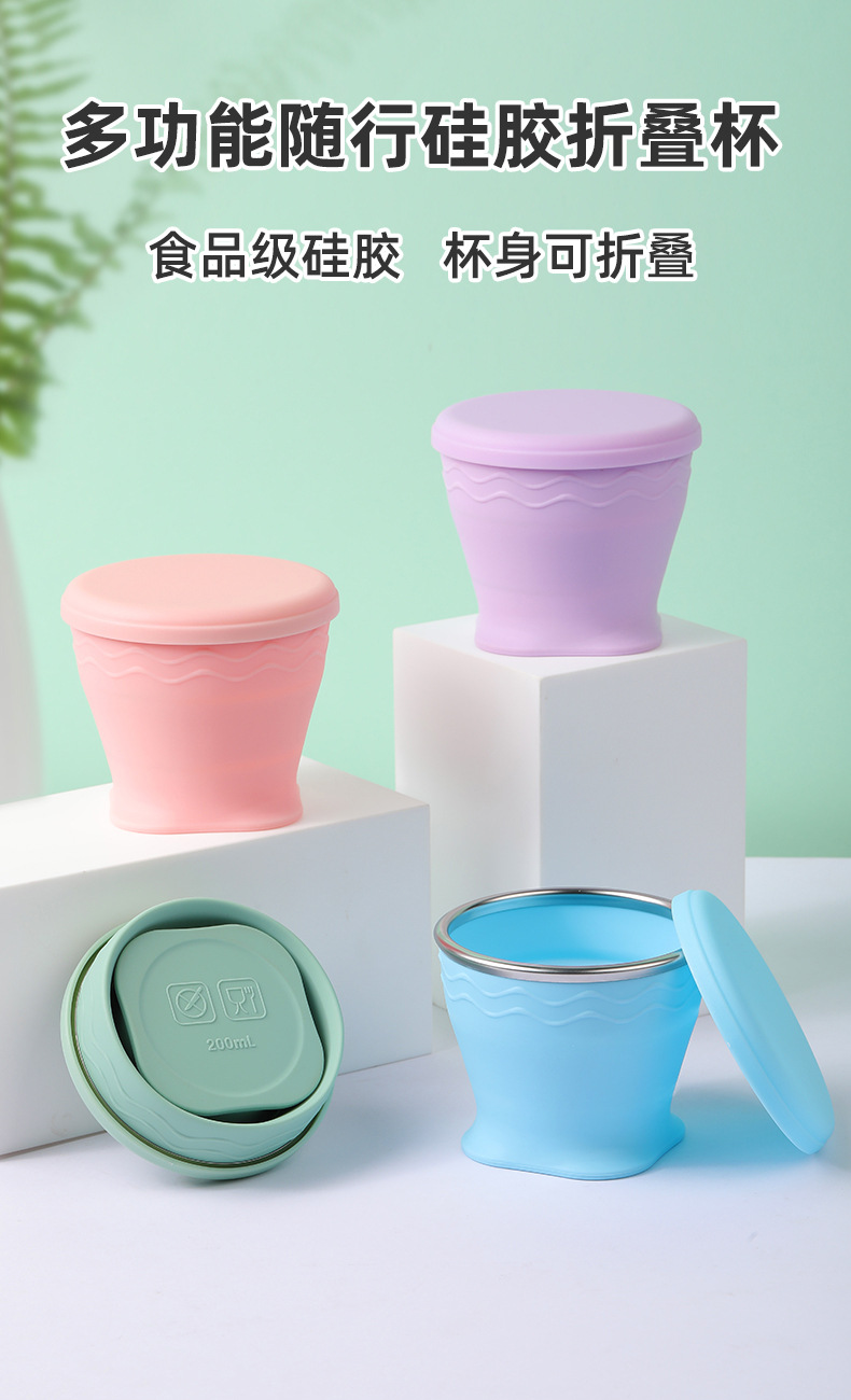 실리콘 접는 컵 휴대용 야외 여행 환경 보호 컵 판촉 선물 뚜껑 개폐식 주전자가있는 물 컵스토어 가기