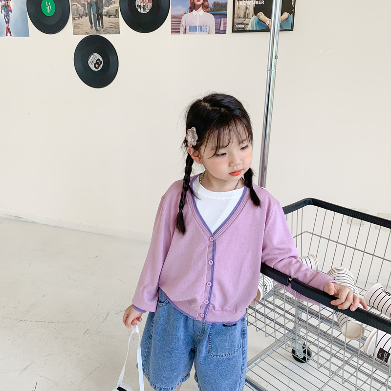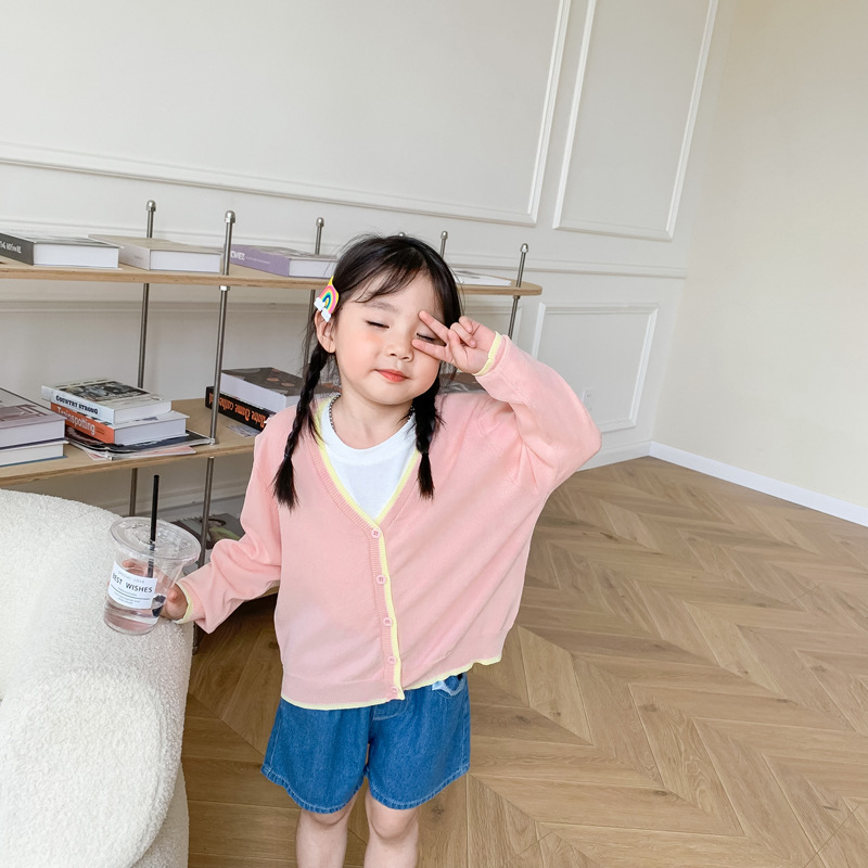 [통관-반환 및 교환 없음] 여름과 가을 어린이 카디건 얇은 얼음 실크 선스크린 니트웨어 소년 소녀를위한 에어컨 셔츠스토어 가기