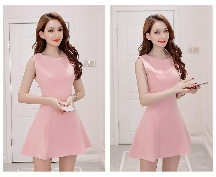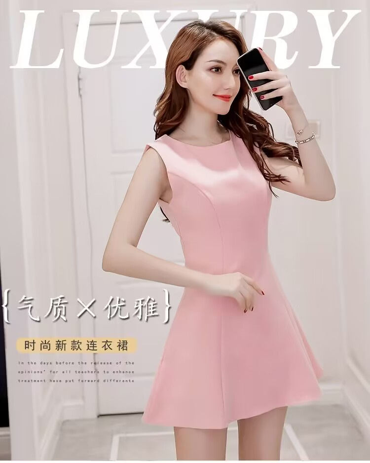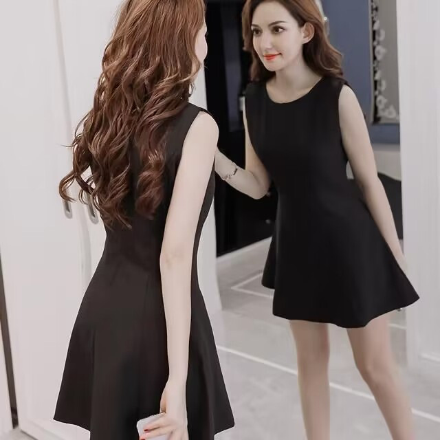 원피스 여자의 우아한 꽉 허리 슬리밍 작은 2023 새로운 신선한 A-라인 스커트 민소매 조끼 베이스 스커트스토어 가기