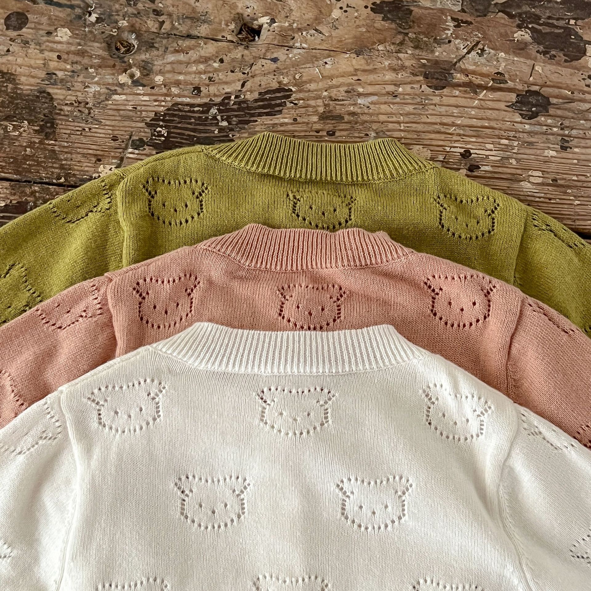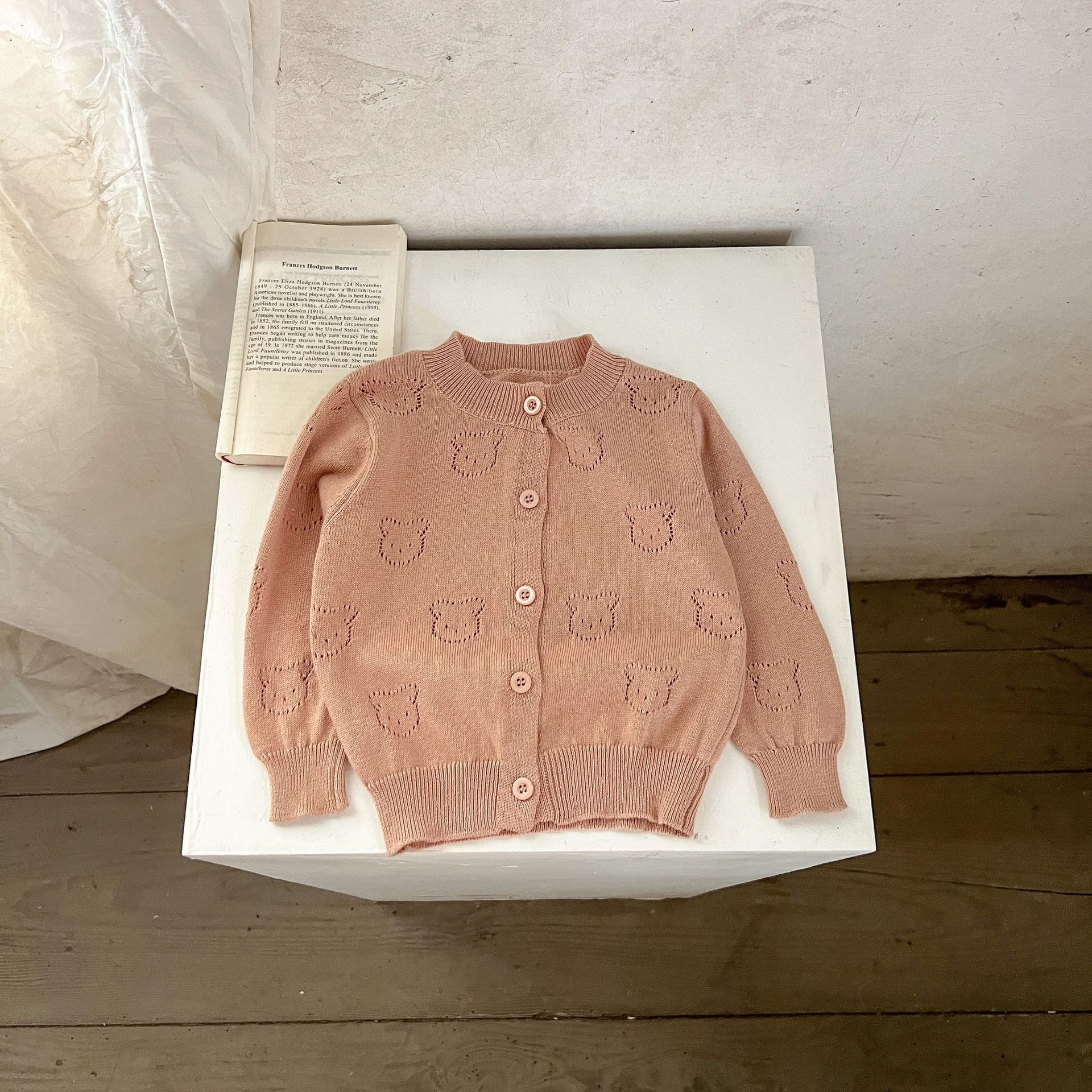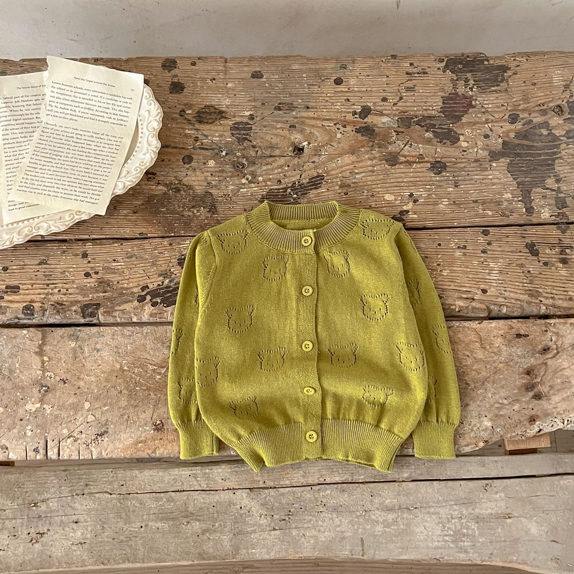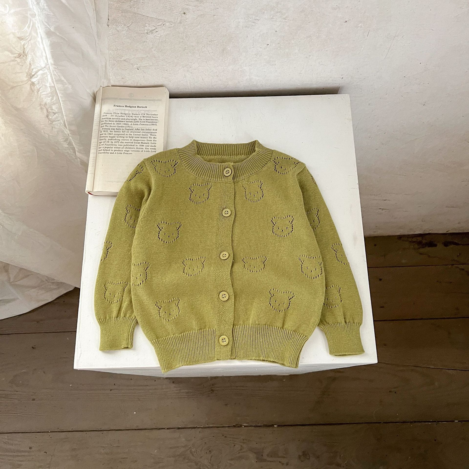 한국 스타일 소년 소녀 아기의 순면 모직 중공 곰 가디건 신생아의 모든 매치 캐주얼 코트 트렌디