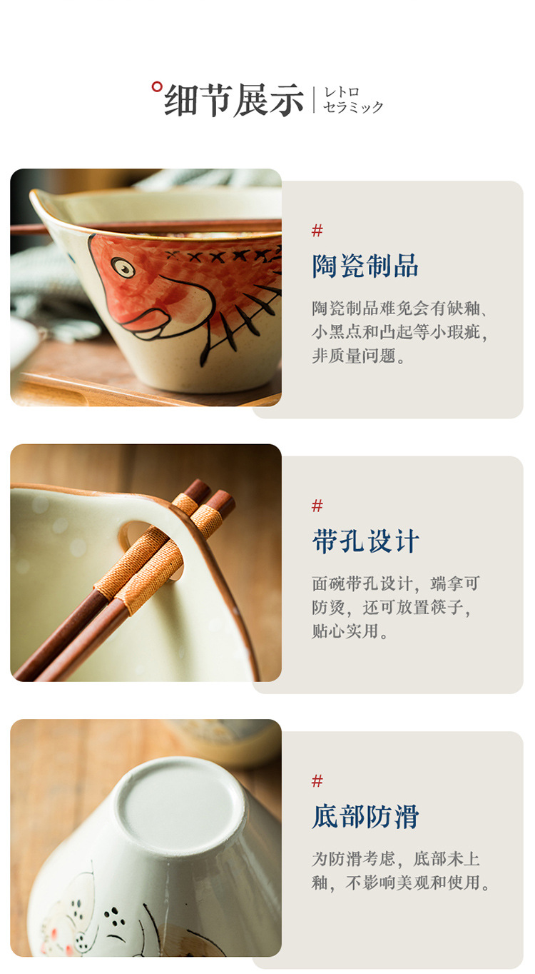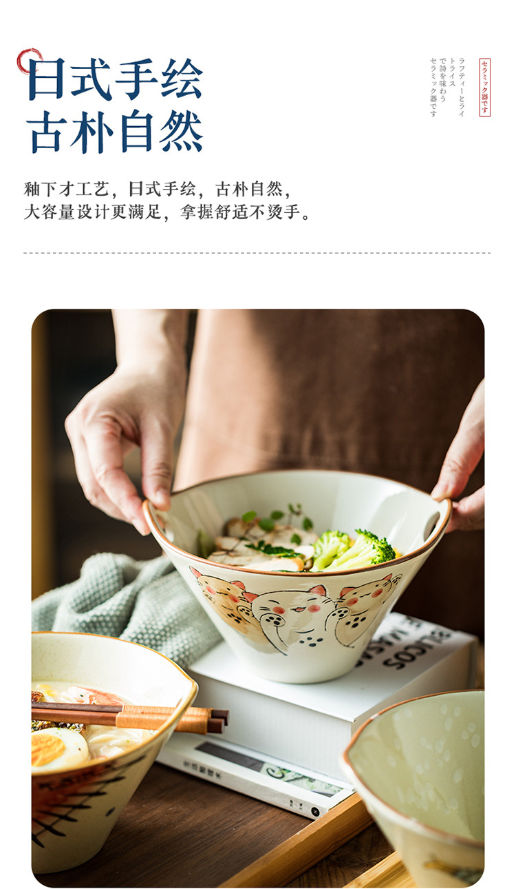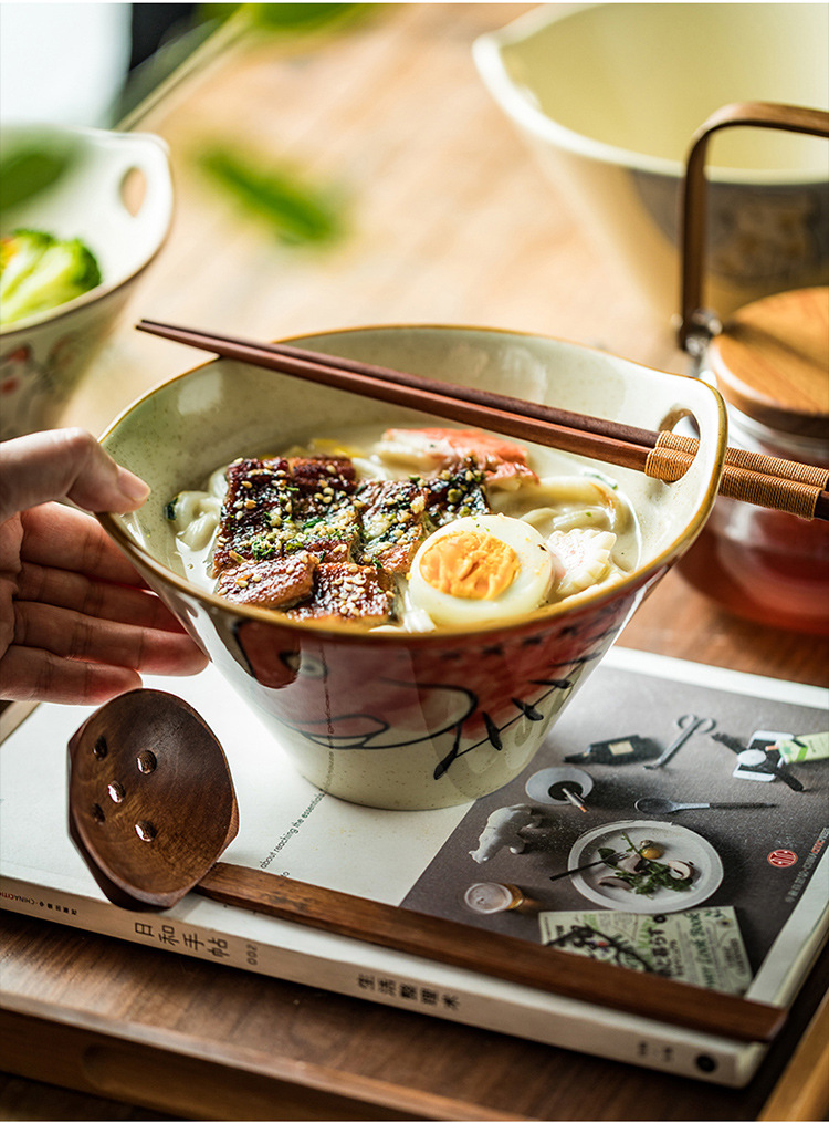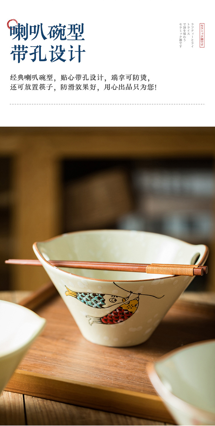 구멍이있는 창조적 인 일본식 라면 그릇 가정용 수프 국수 세라믹 그릇 큰 뿔 그릇 상업용 양동이 그릇 식기 도매
