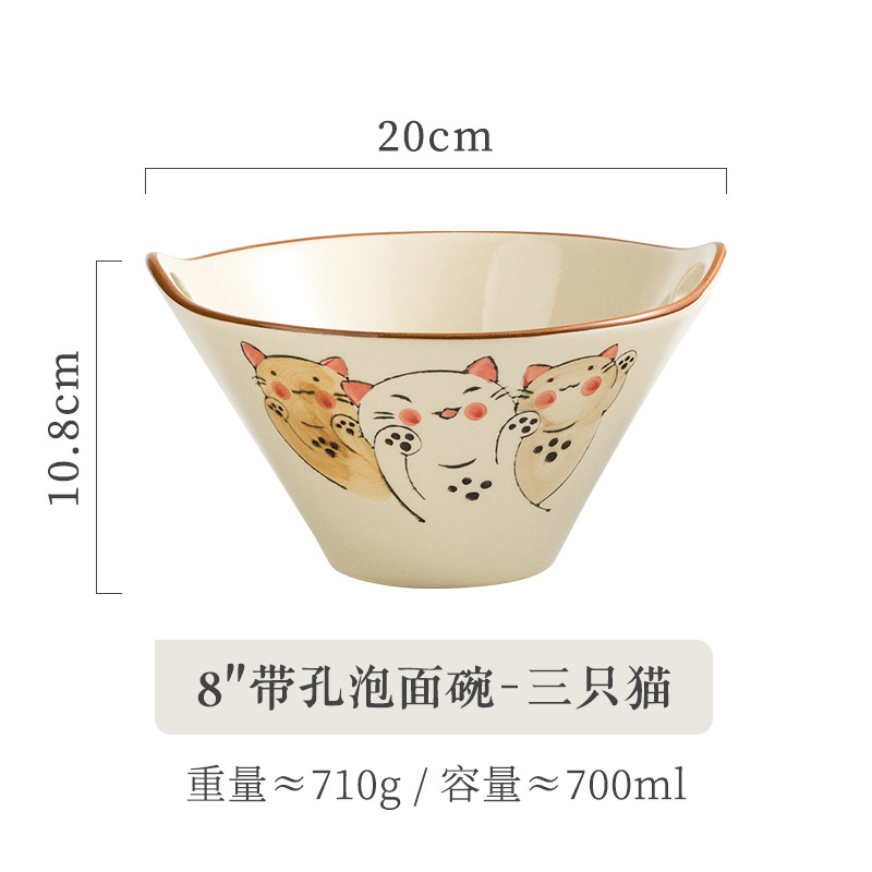 • 구멍이있는 8 "국수 그릇-고양이 3 마리
