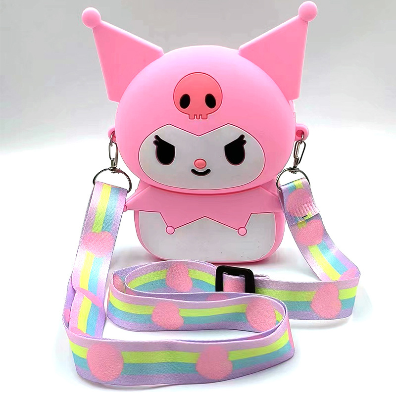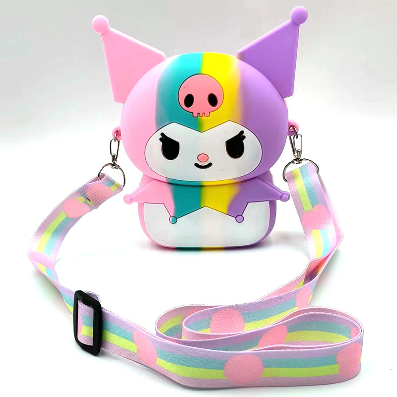 공장 핫셀링 귀여운 고양이형 실리콘 동전 지갑 멀티 컬러 로프 스트랩 아동 야외 놀이 대각선 가방