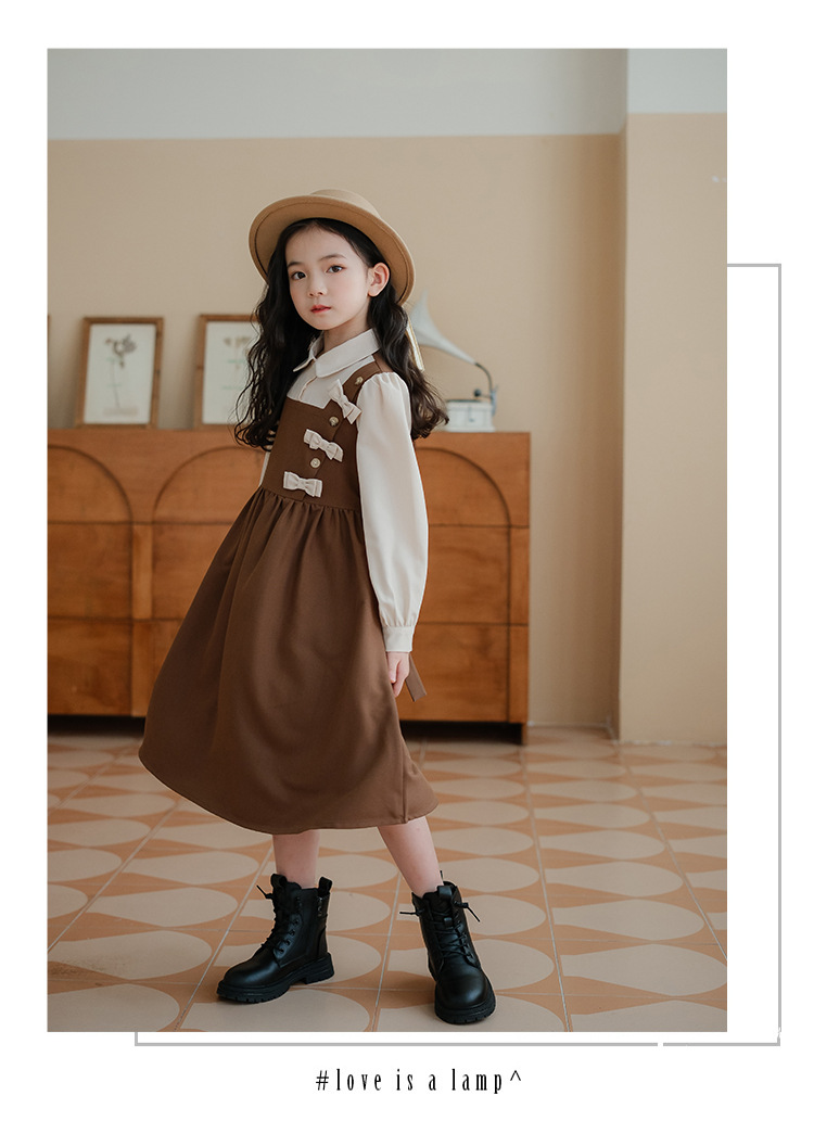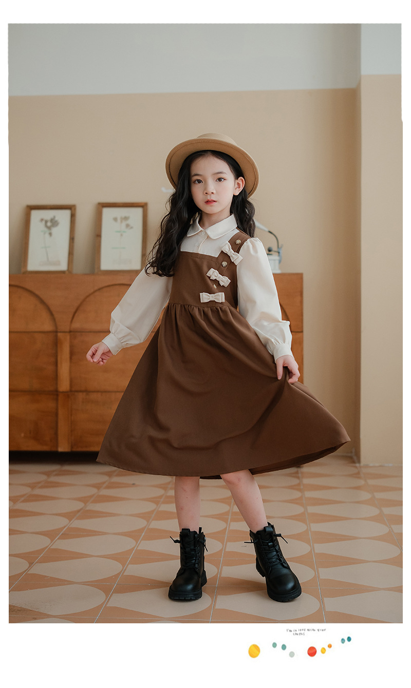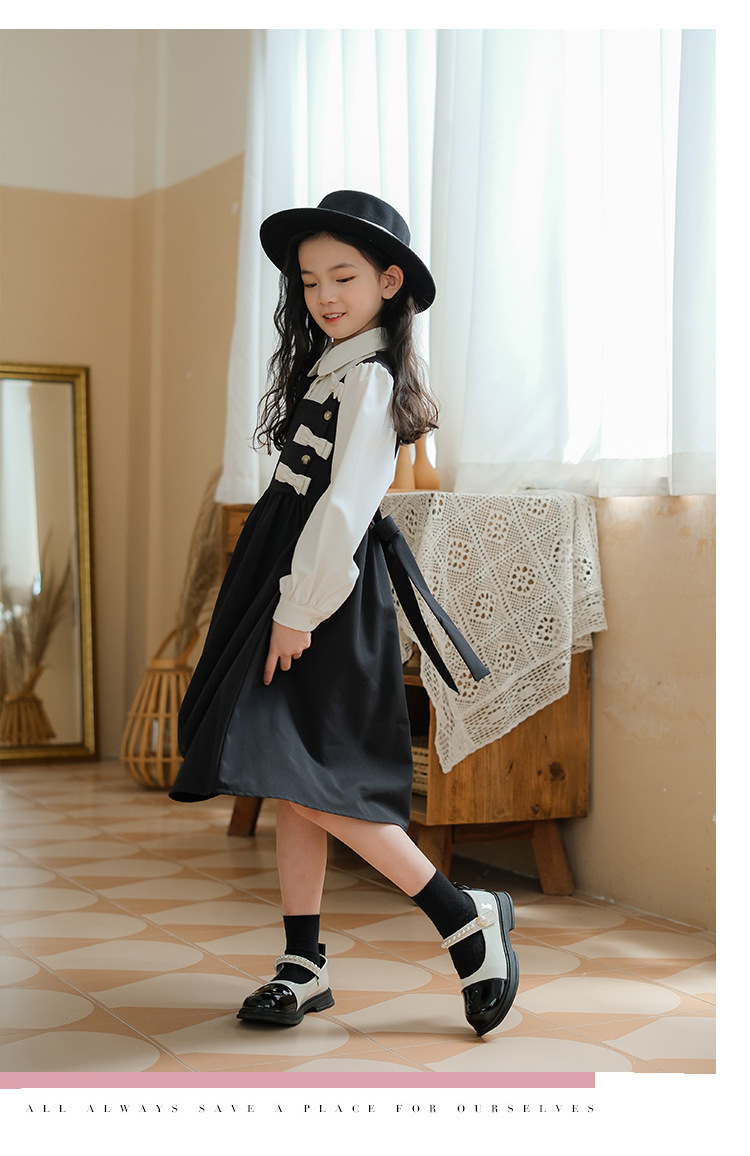여아 가을 겨울 트렌디한 벨트 드레스, 큰 어린이용 리본 매듭 공주 레이스 롱 드레스, 벨벳 로리타 스타일스토어 가기