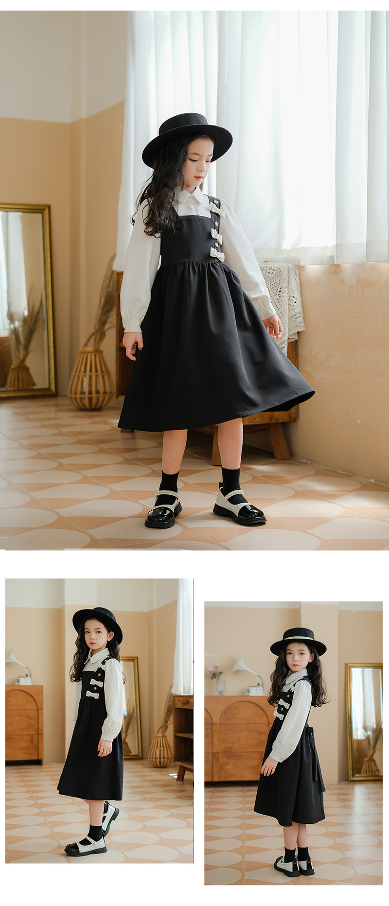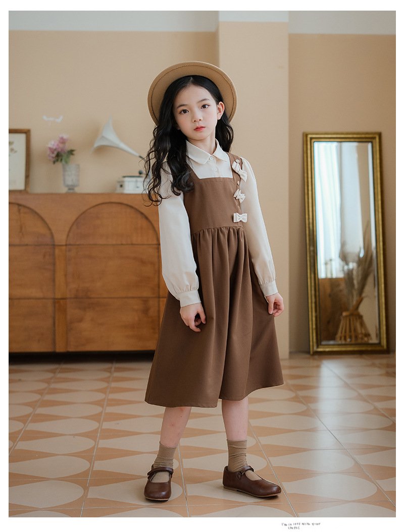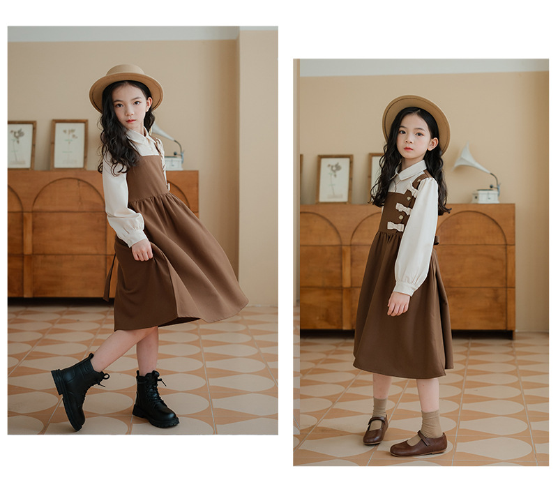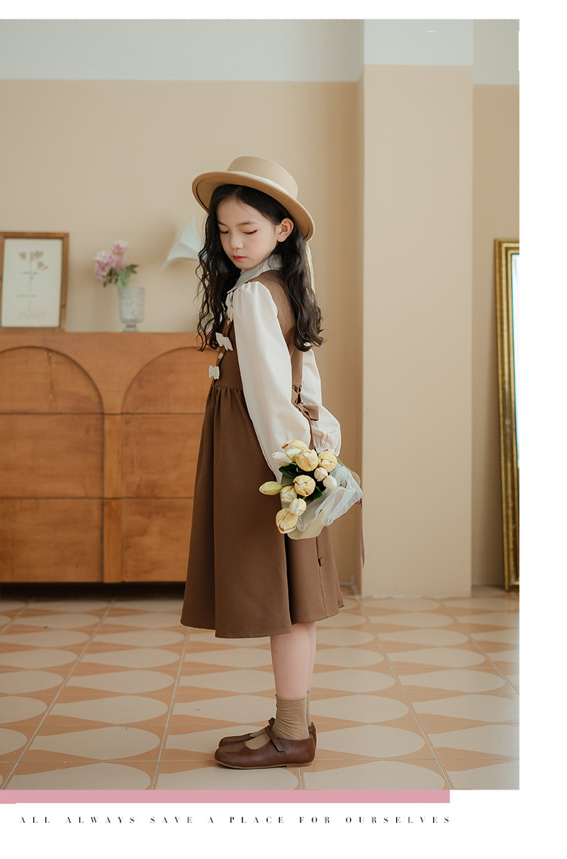 여아 가을 겨울 트렌디한 벨트 드레스, 큰 어린이용 리본 매듭 공주 레이스 롱 드레스, 벨벳 로리타 스타일스토어 가기