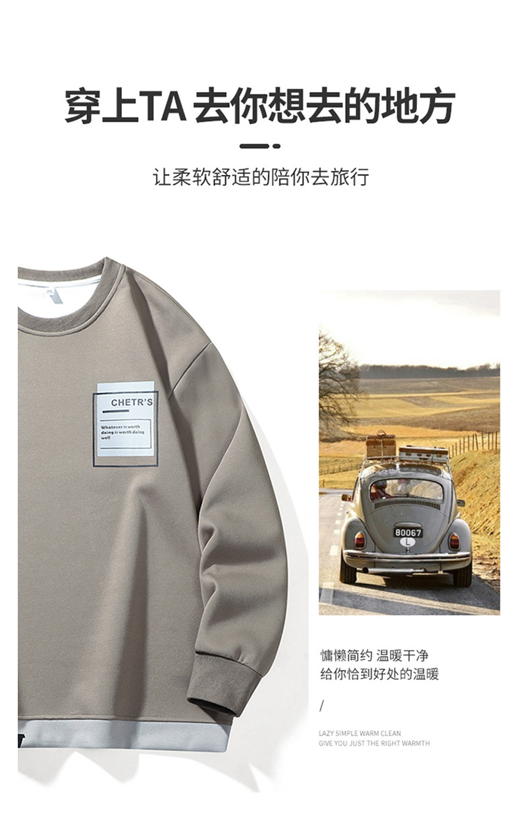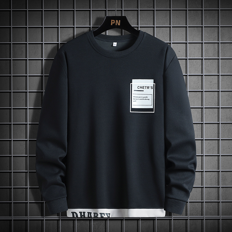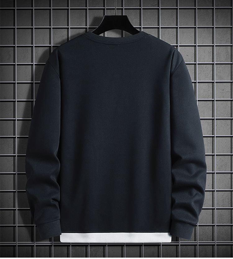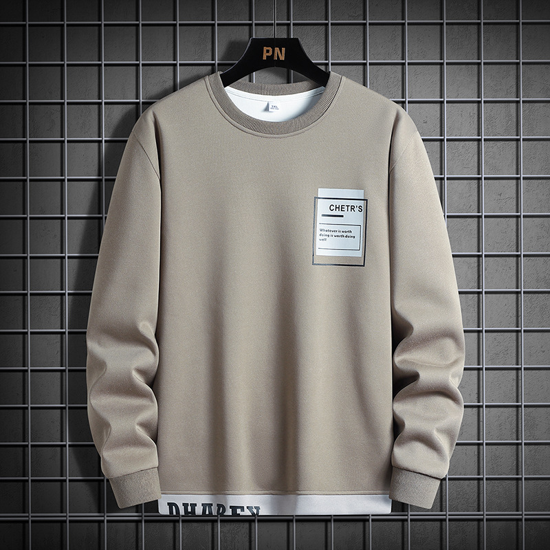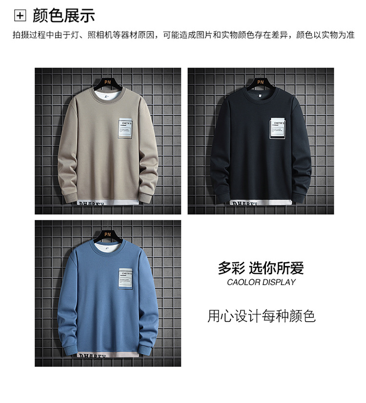 플러스 사이즈 남자의 가을 새로운 느슨한 가짜 투피스 라운드 넥 유행 최고 플러스 무게 플러스 캐주얼 모든 매치 스웨터 남성용스토어 가기