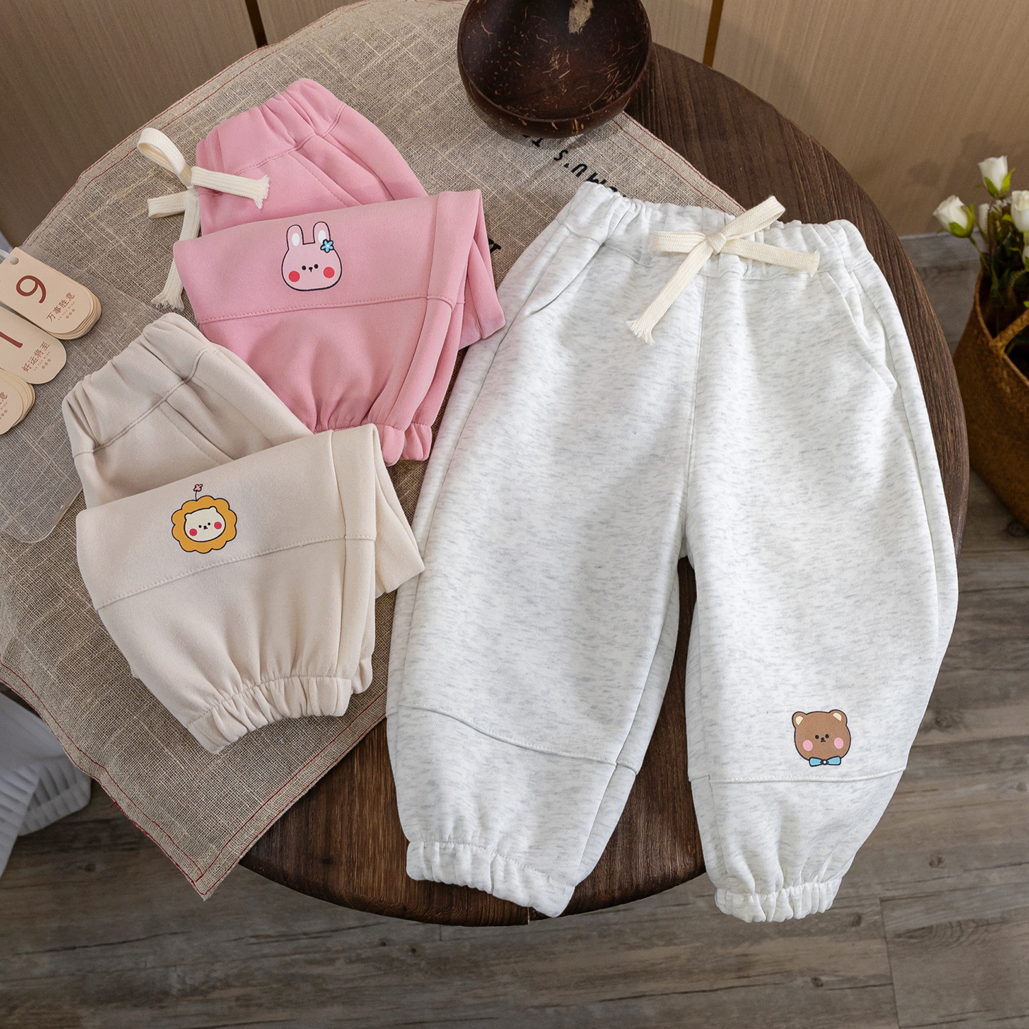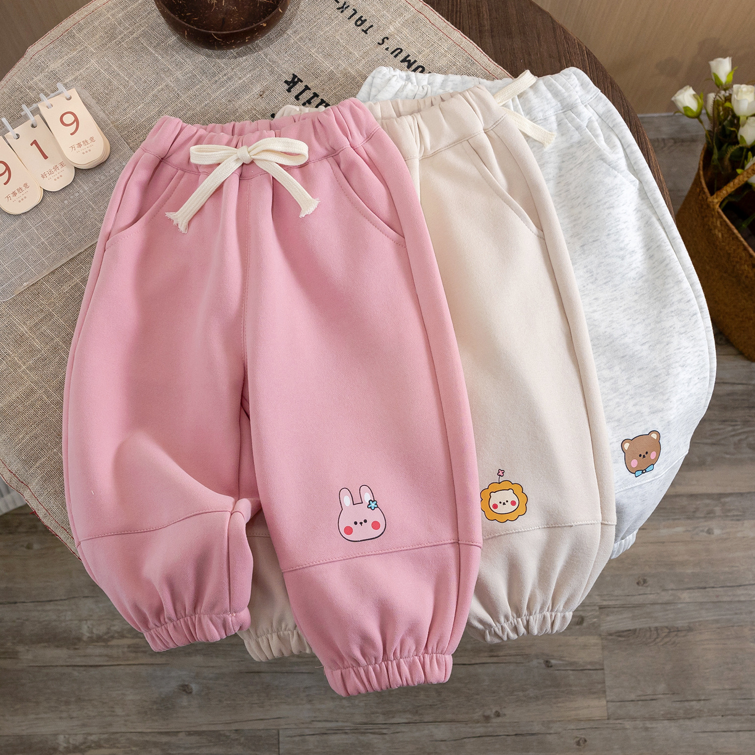 女童裤子春秋款2023新款中小童卡通运动裤女宝宝洋气休闲外穿长裤