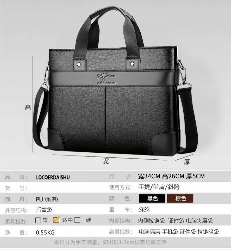 Baoding Baigou 가죽 질감 남성용 핸드백 비즈니스 가방 서류 가방 남성 캐주얼 크로스바디 백스토어 가기