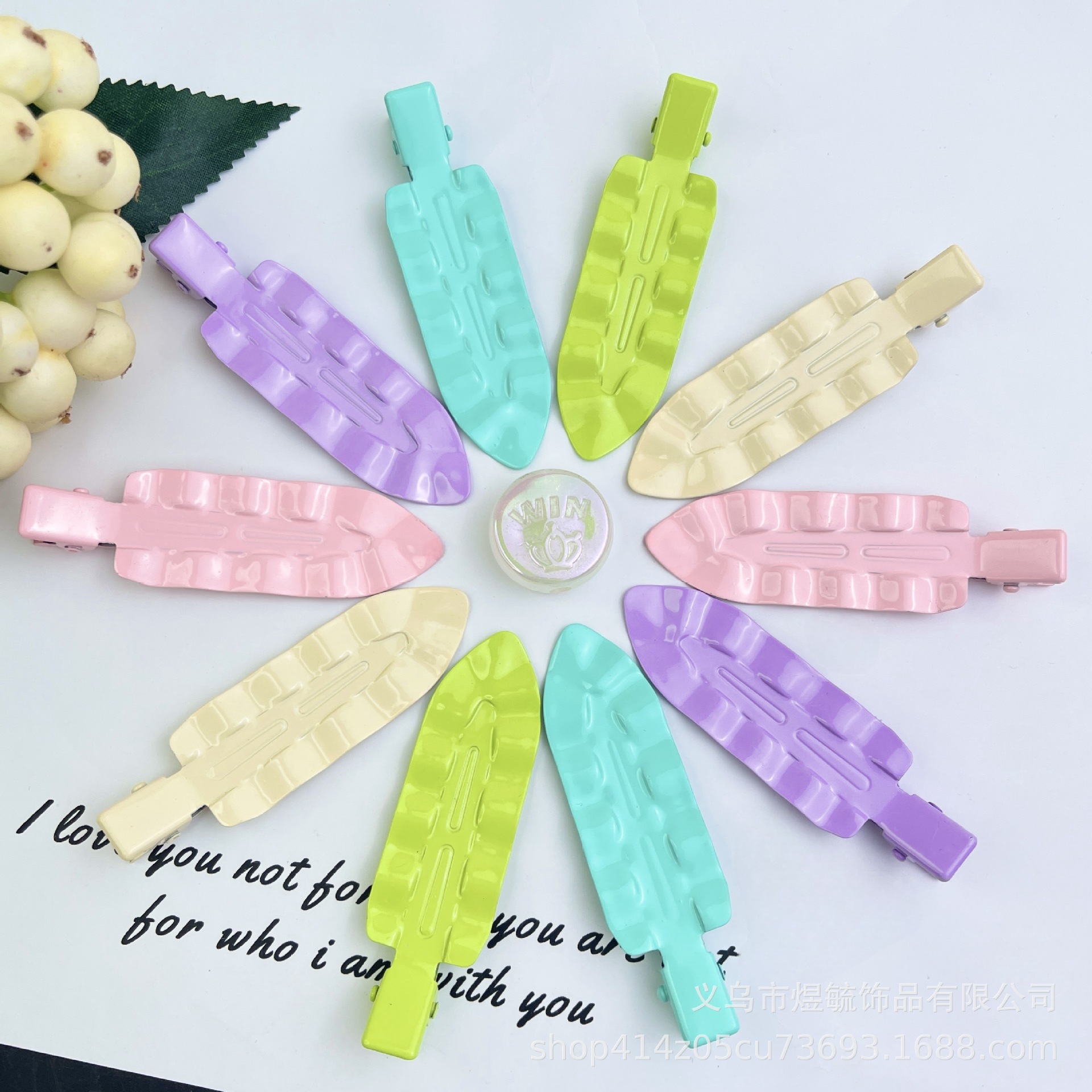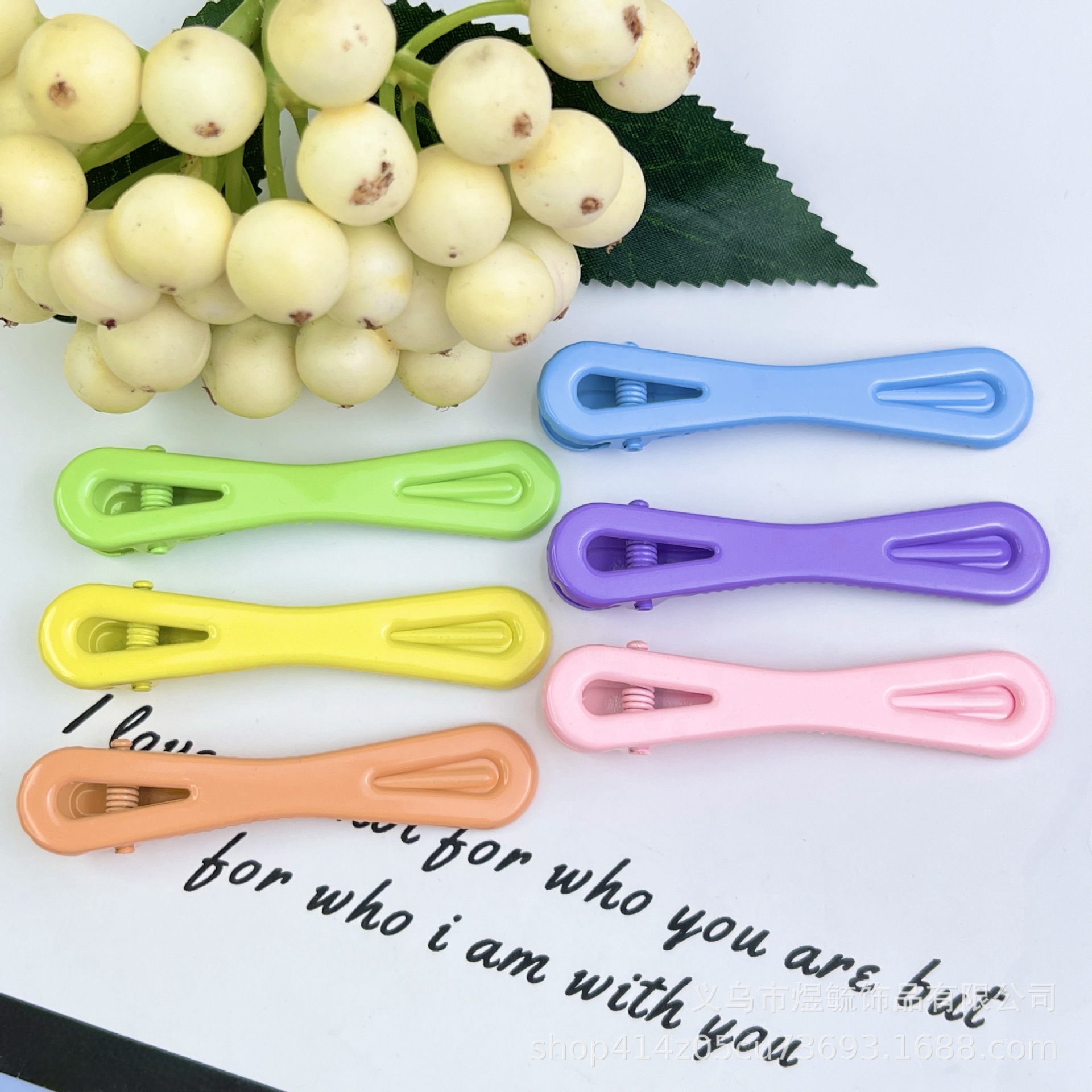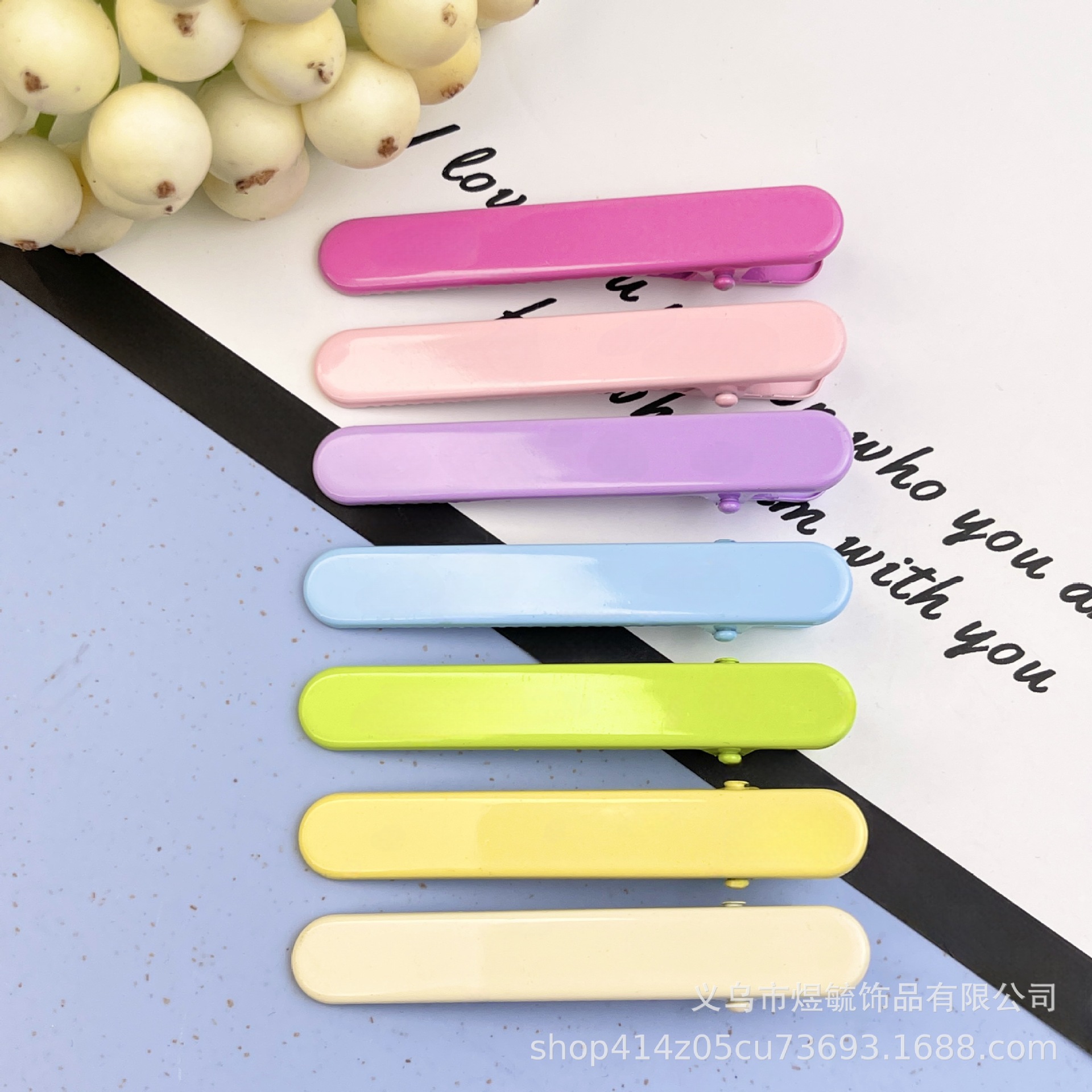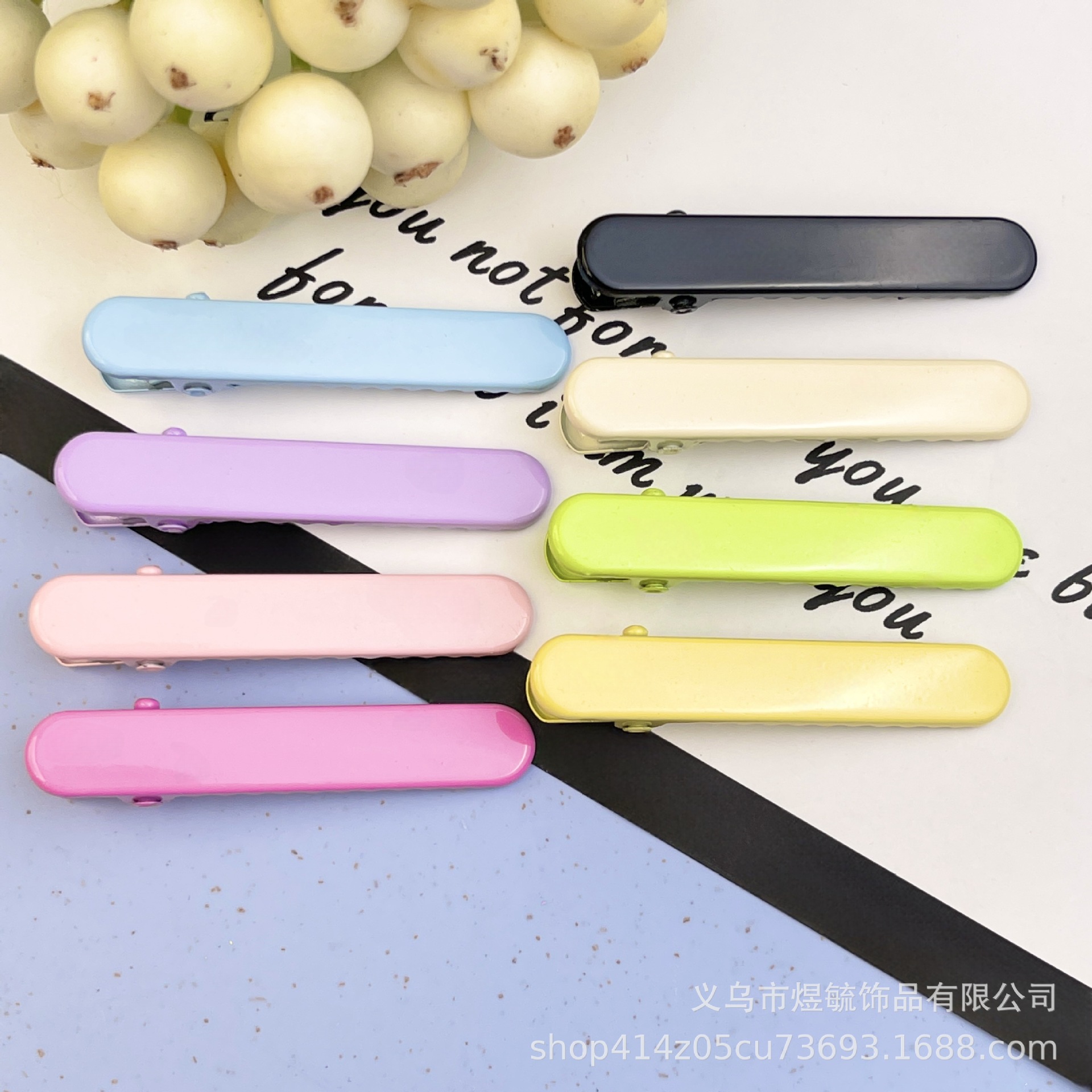 광택이 나는 무봉제 덕빌 클립 캔디 컬러 헤어핀 귀여운 헤어 액세서리 사이드 클립 소재 앞머리 클립 도장 액세서리 도매스토어 가기