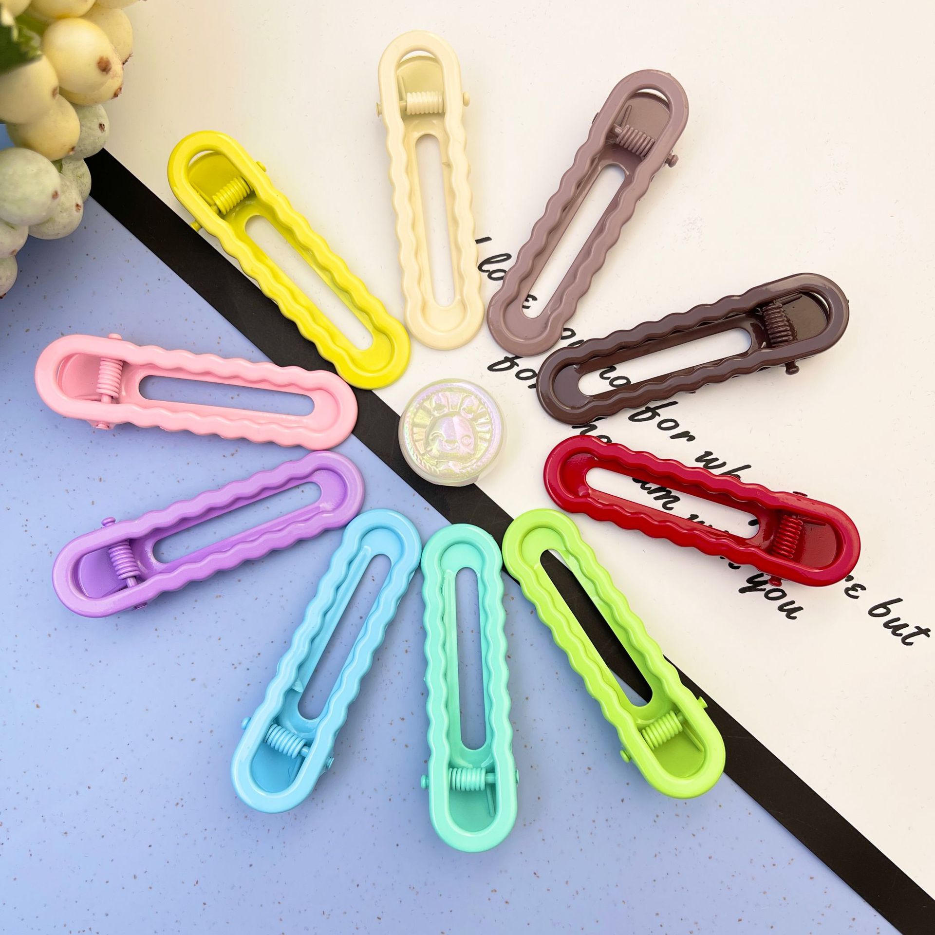 광택이 나는 무봉제 덕빌 클립 캔디 컬러 헤어핀 귀여운 헤어 액세서리 사이드 클립 소재 앞머리 클립 도장 액세서리 도매