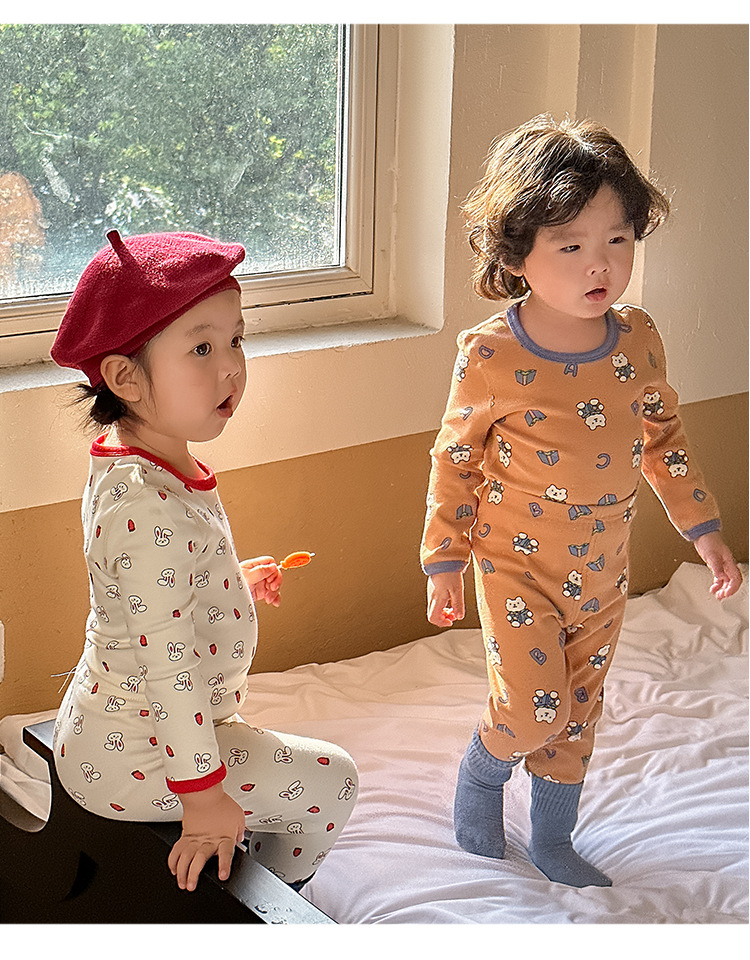 가을과 겨울 아기 열 속옷 세트 뼈없는 어린이 가을 옷 가을 바지 양모 스트레치 홈 의류 소년과 소녀를위한 잠옷