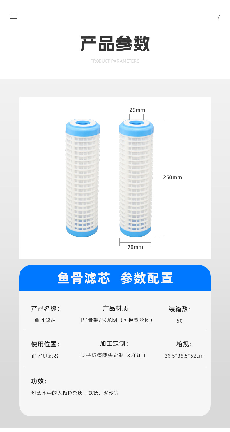 10 인치 마이크로 메쉬 피시본 필터 요소 나일론/스테인레스 스틸 메쉬 충전 필터 재료 사전 필터 요소 청소 기계 필터 요소