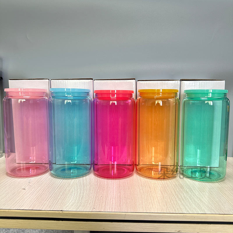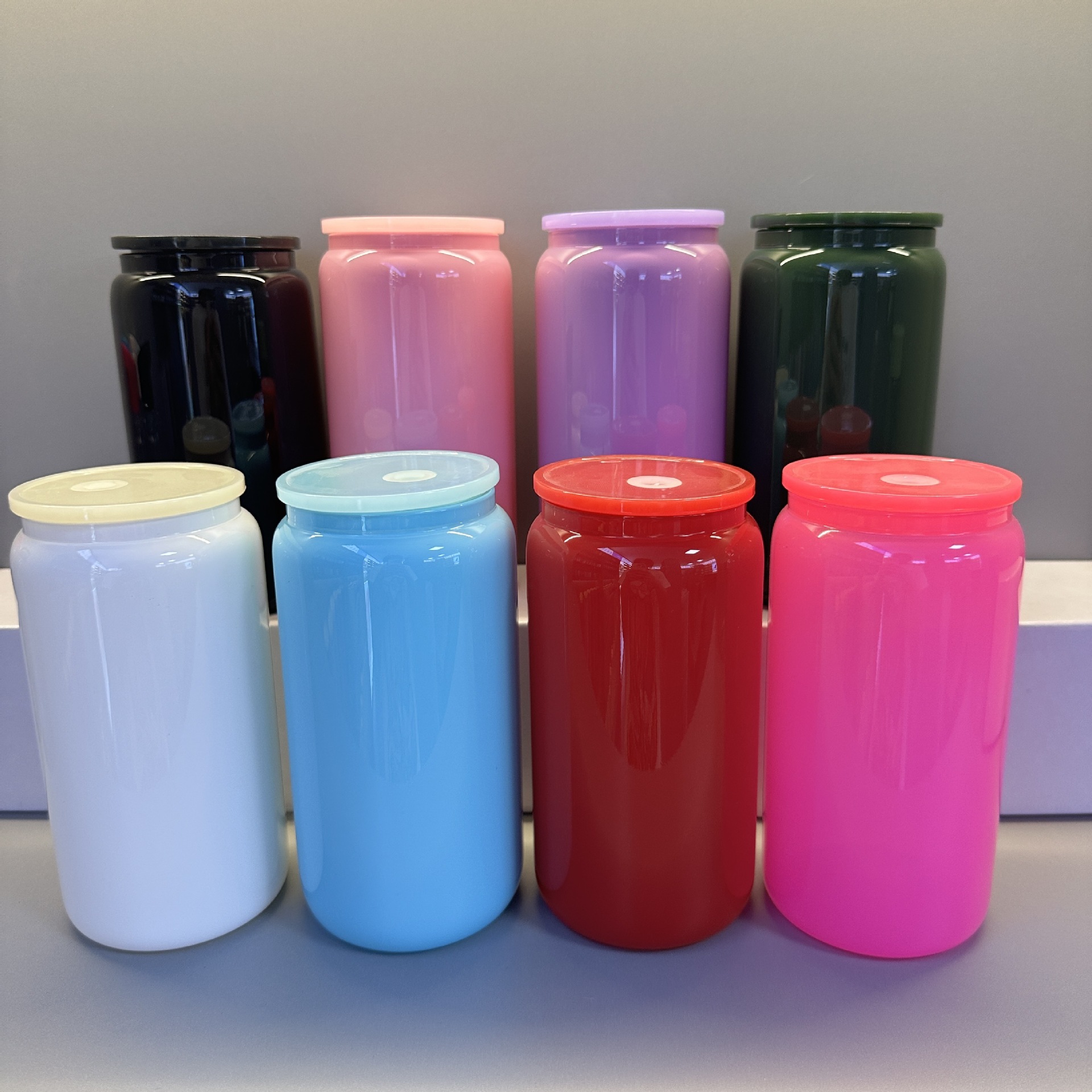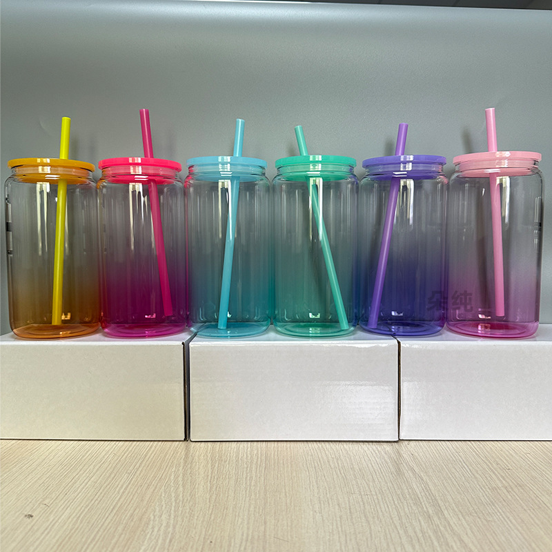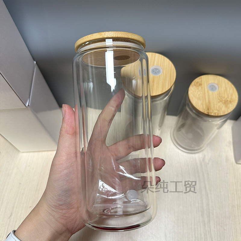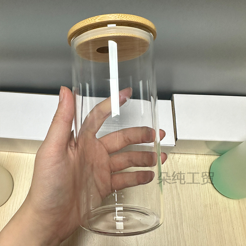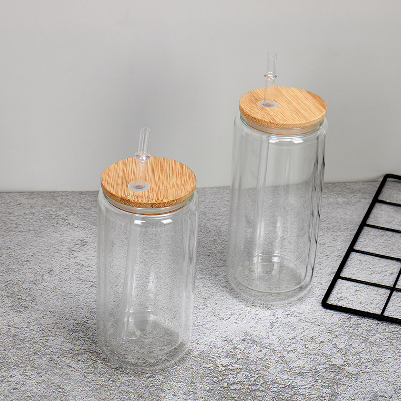 승화 메이슨 유리 12 oz16oz 콜라 컵 캔 프로스트 스트로우 싱글 및 더블 유리 대나무 커버 컵스토어 가기