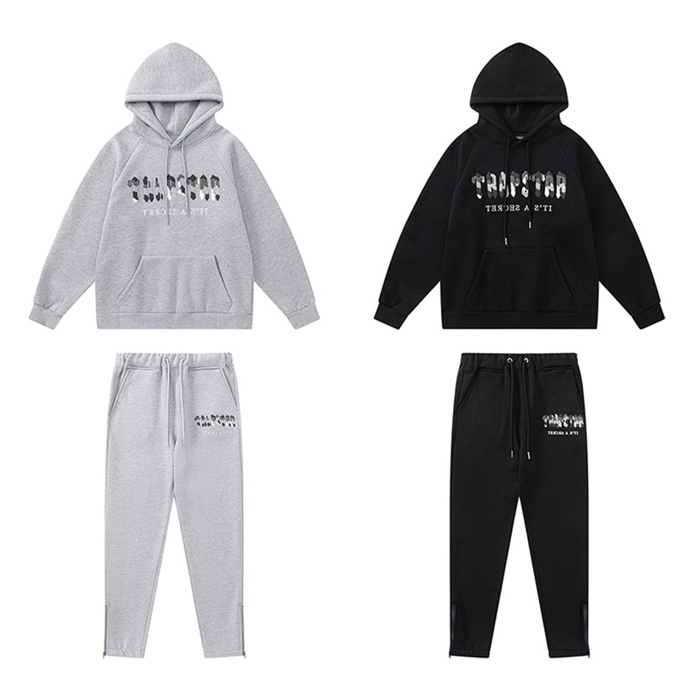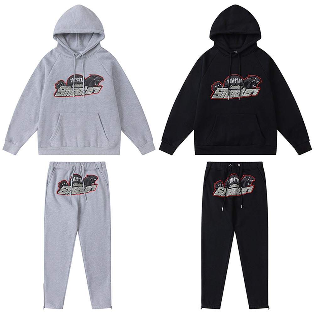 아메리칸 스타일 트랩스타 타이거 헤드 타올 자수 후드 기모 땀 바지 봄 남성과 여성의 느슨한 세트