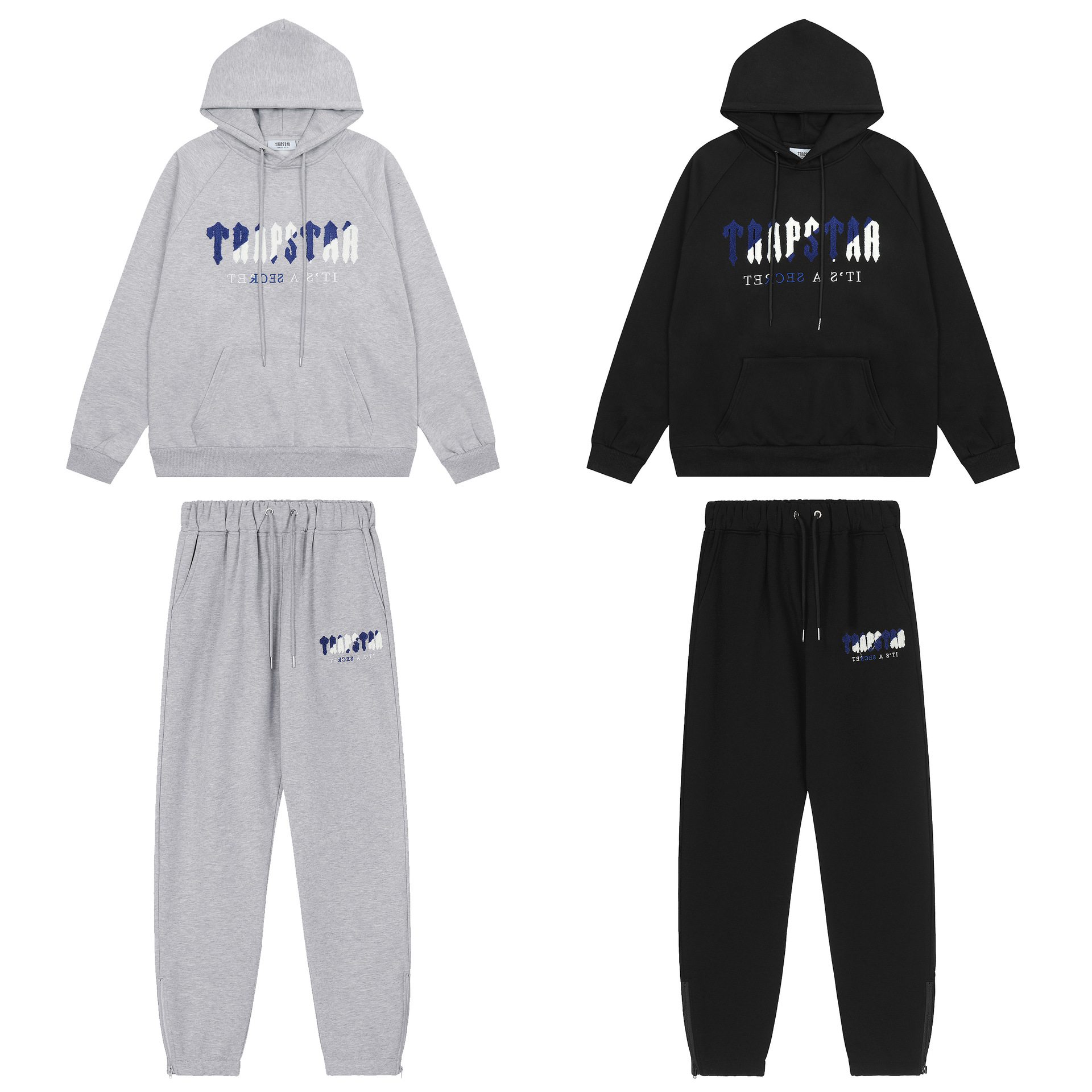 아메리칸 스타일 트랩스타 타이거 헤드 타올 자수 후드 기모 땀 바지 봄 남성과 여성의 느슨한 세트스토어 가기