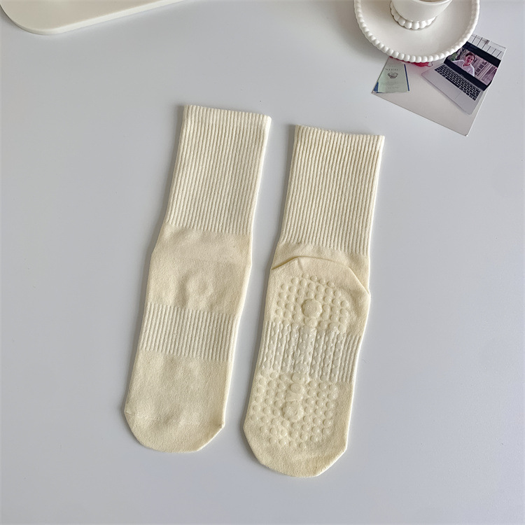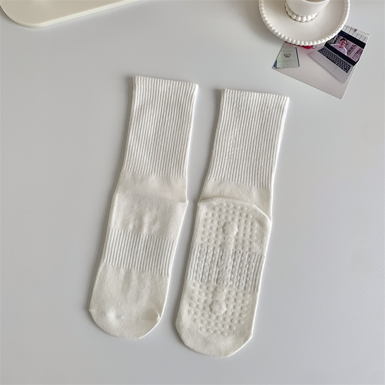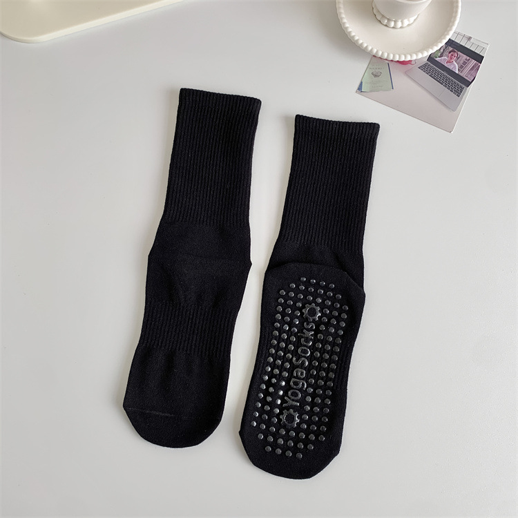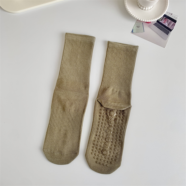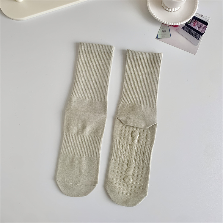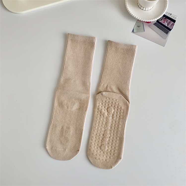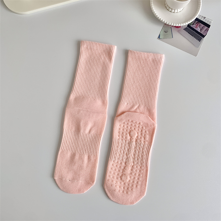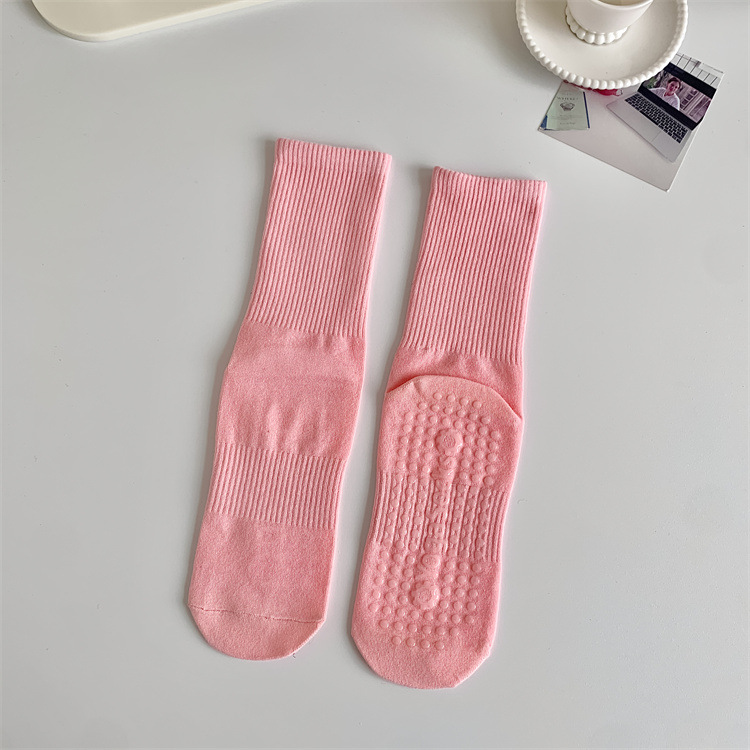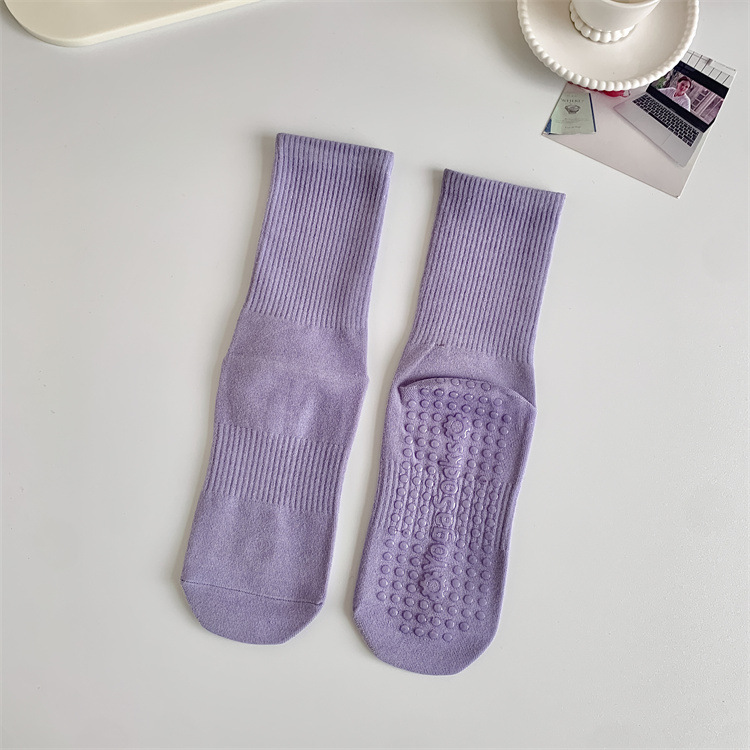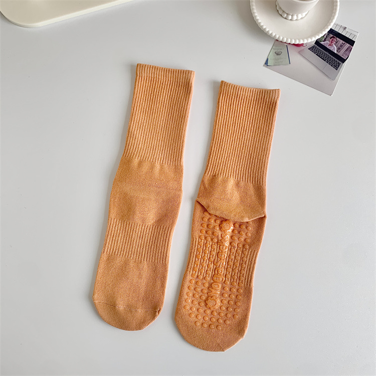 가을 새로운 양말 캔디 컬러 요가 양말 중간 튜브 양말 면 미끄럼 방지 실리콘 실내 필라테스 여성 스포츠 양말