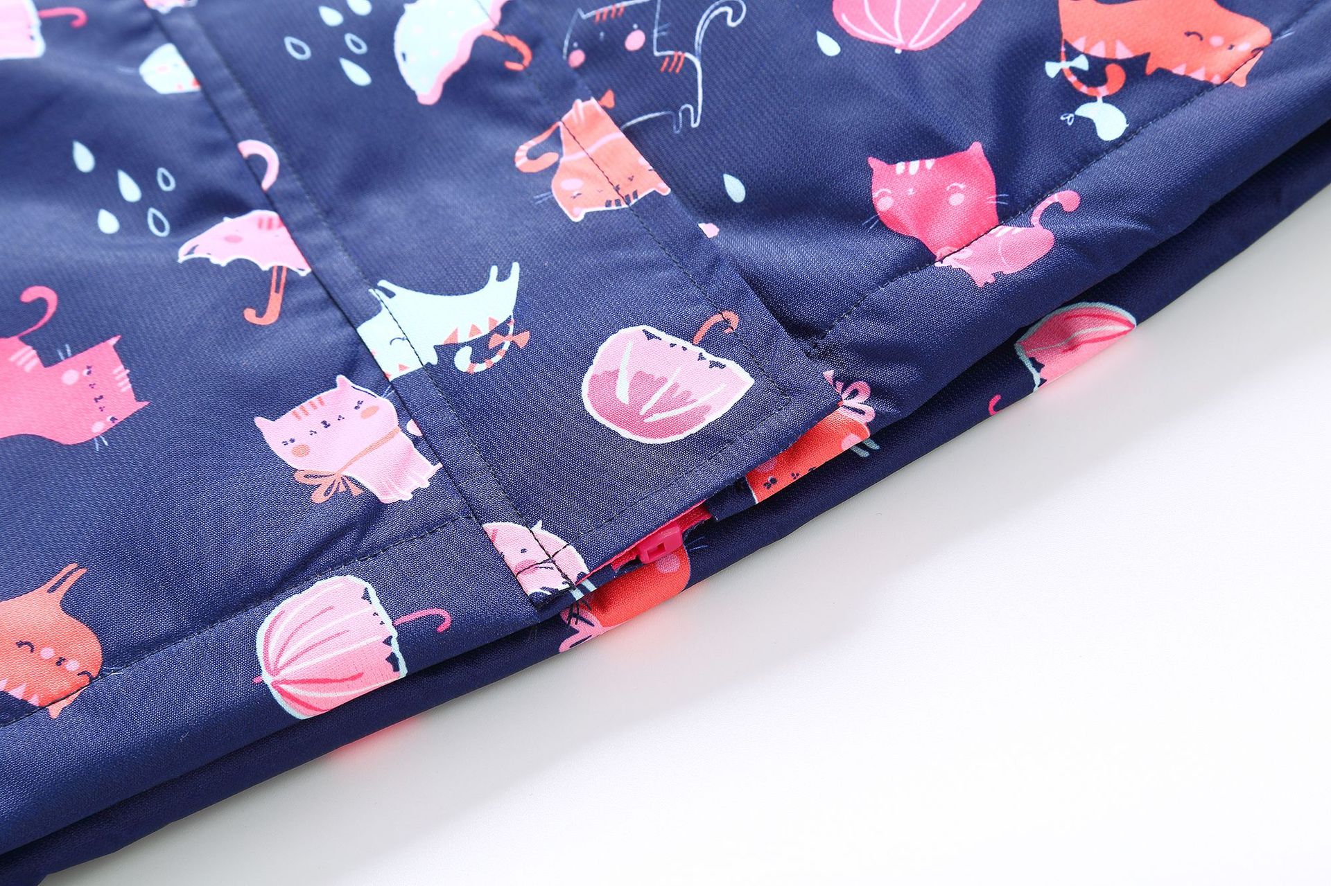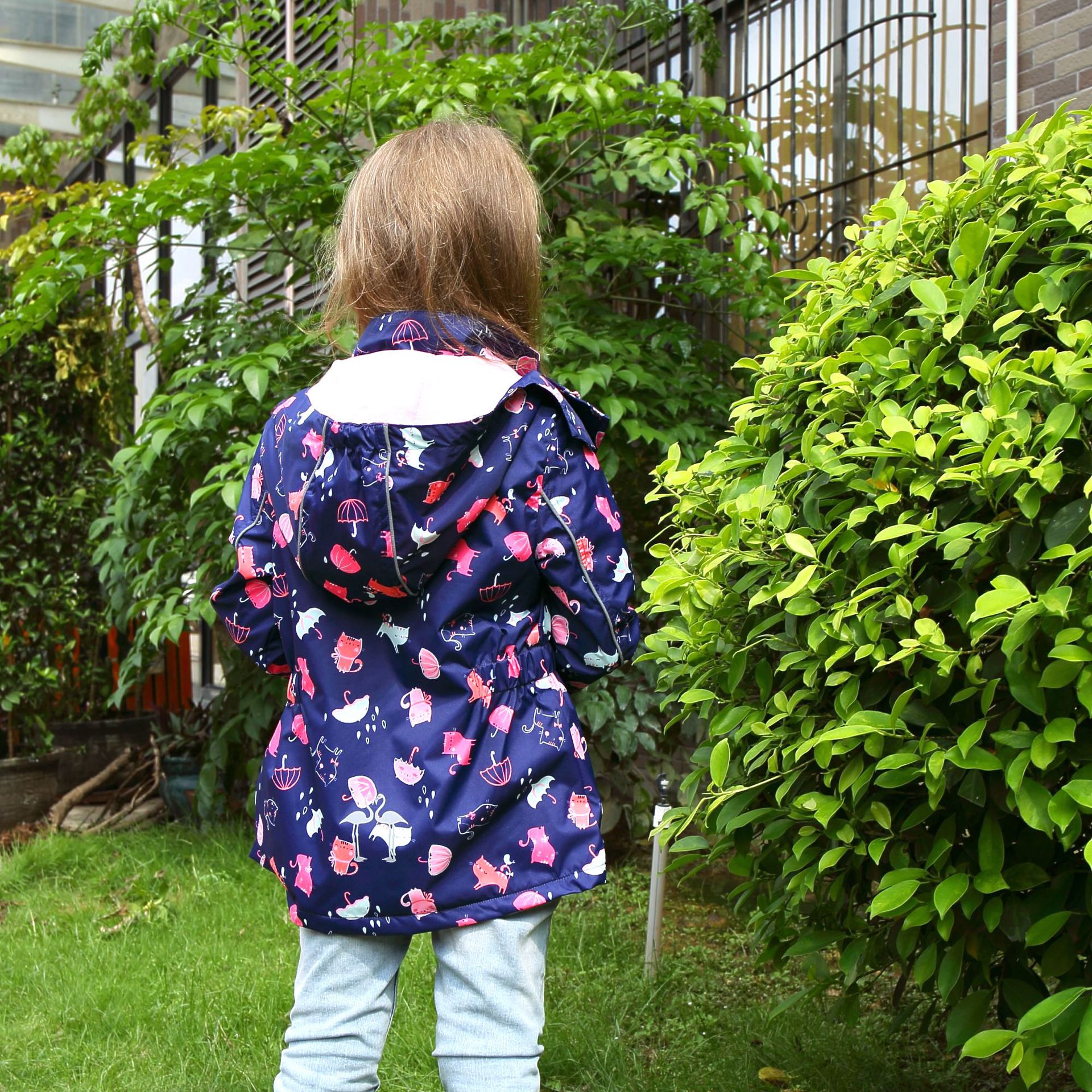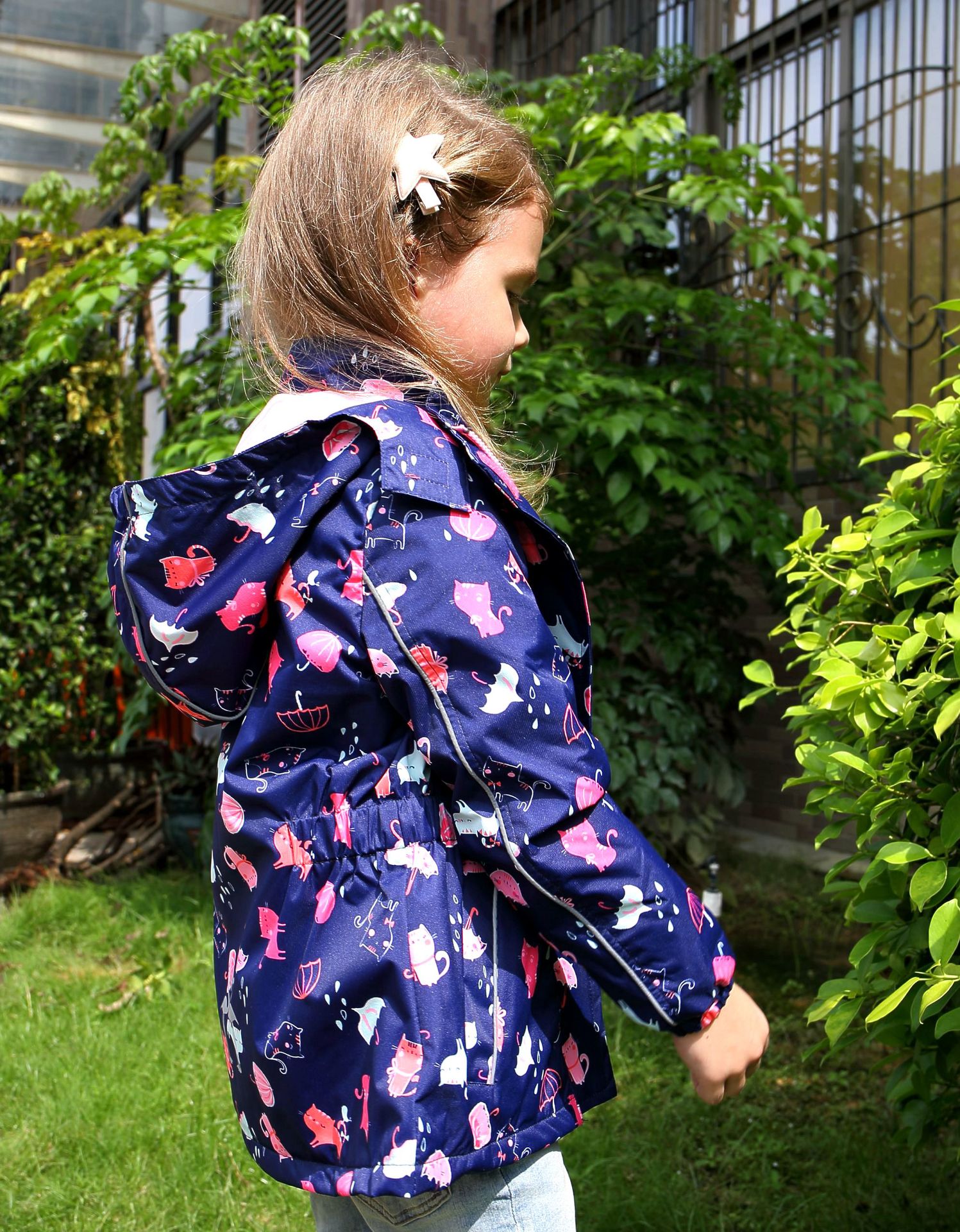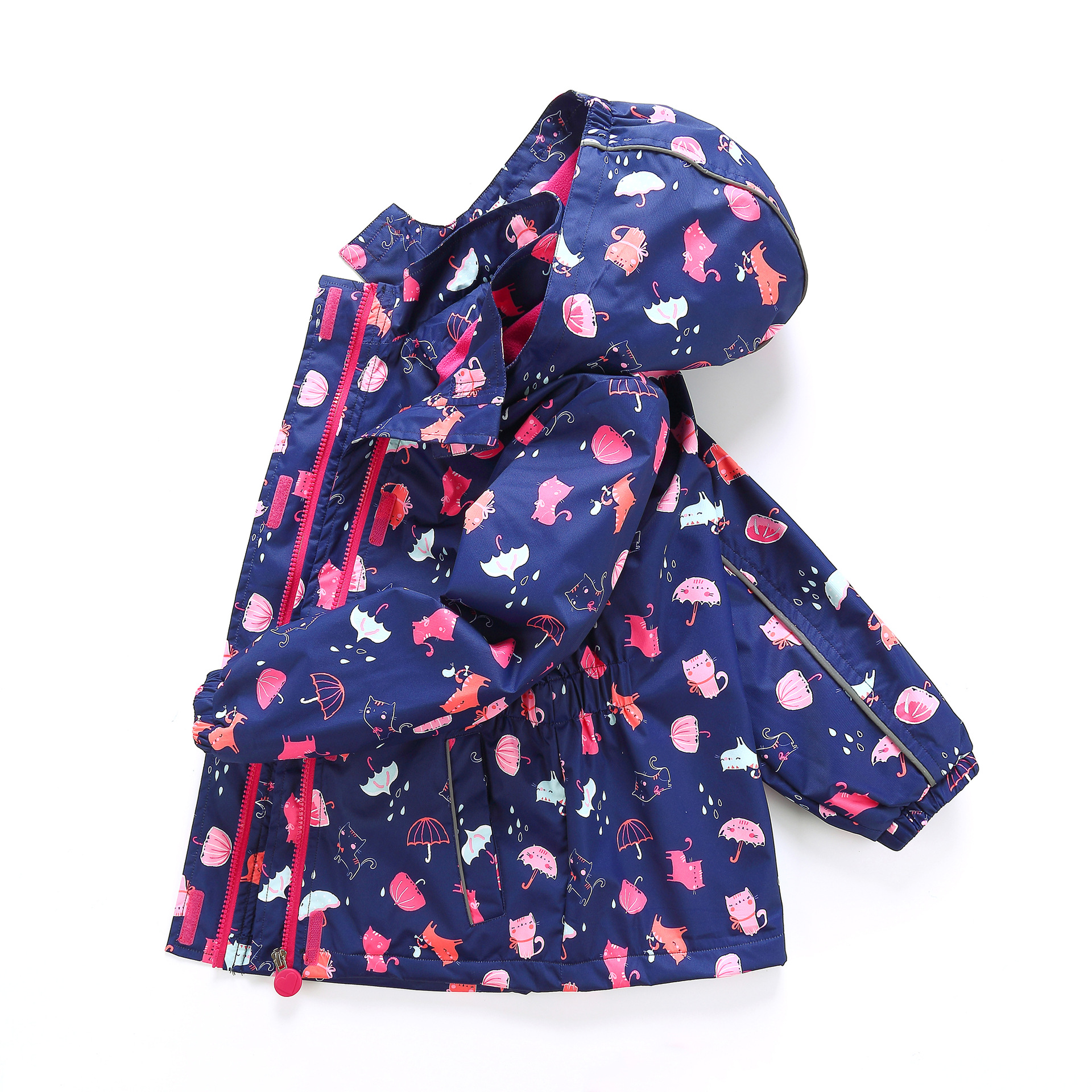 此款风衣很多细节配有安全闪光条,背面是的花朵反光标,袖子也是有反光标。帽子有反光绳。在夜晚非常闪亮,为宝宝夜晚出行安全护航