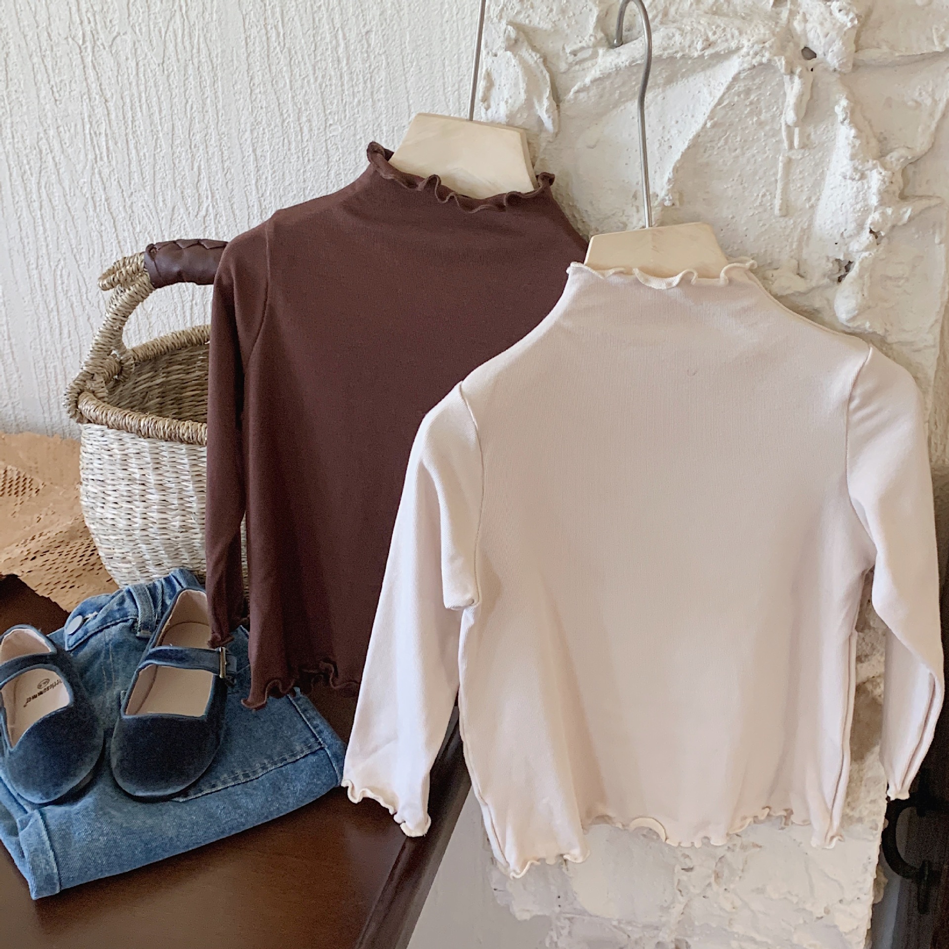 Mi Mi 소녀 브러시 바닥 셔츠 어린이 2023 가을, 겨울 한국 스타일 아기 소녀 인형 칼라 긴 소매 내부 탑스토어 가기