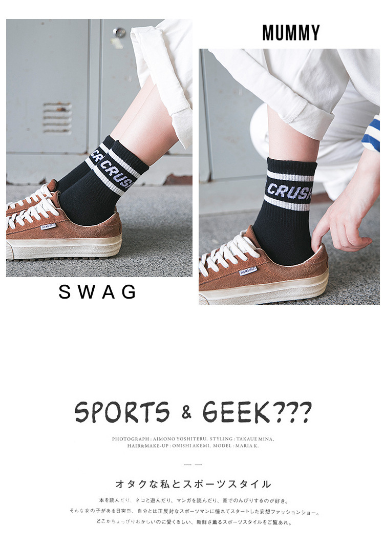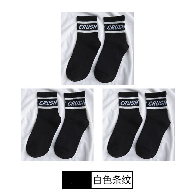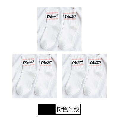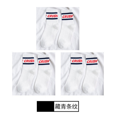 양말 여자의 가을과 겨울 순수한 중간 튜브 거리 면 스포츠 한국 스타일 대학 스타일 스트라이프 영어 편지 짧은 양말 트렌디 한 일본 스타일