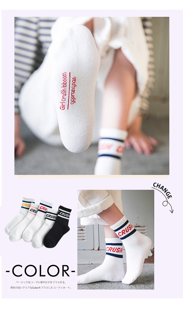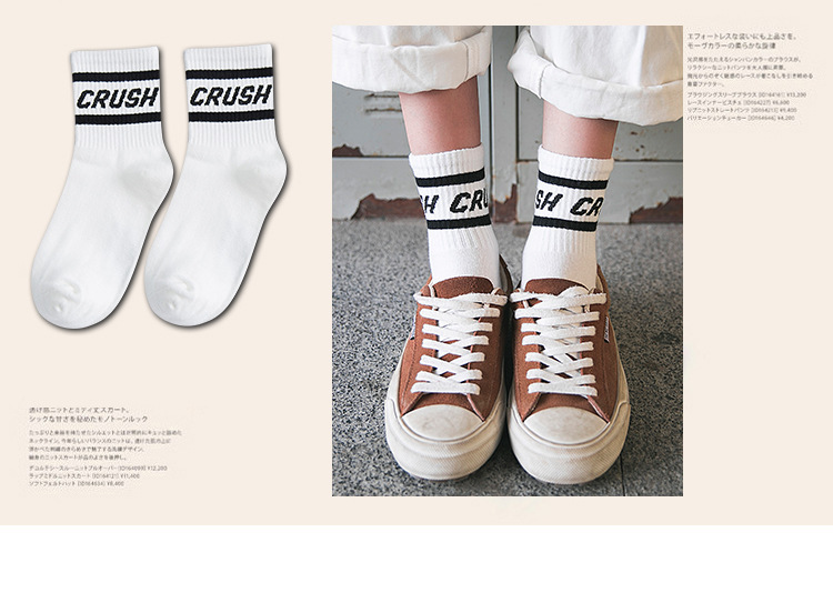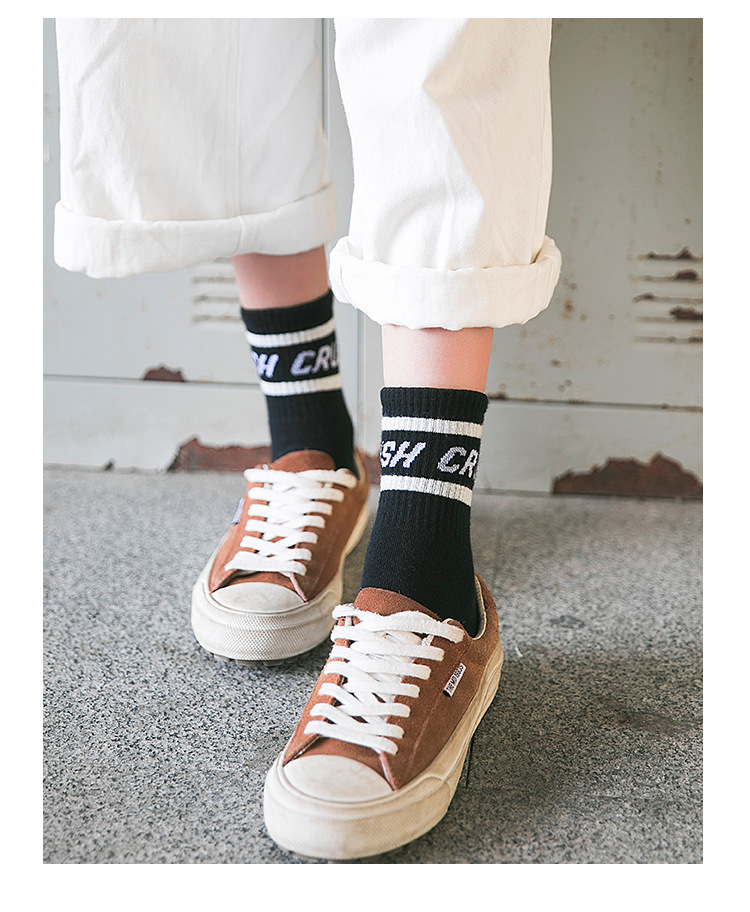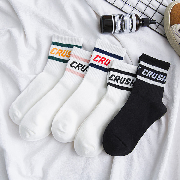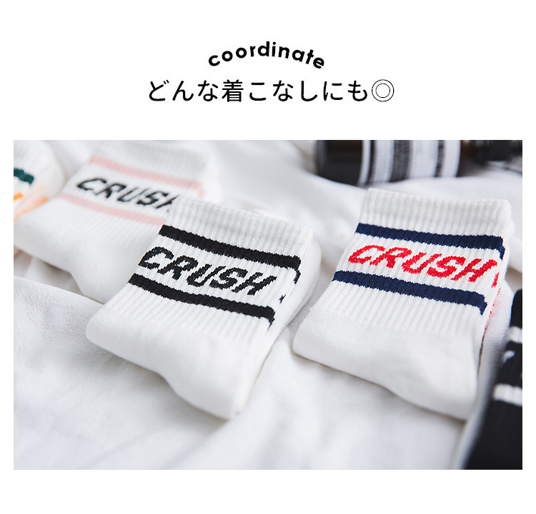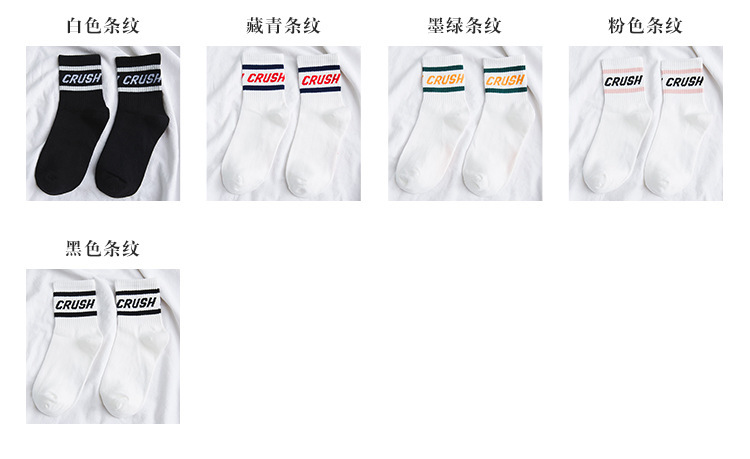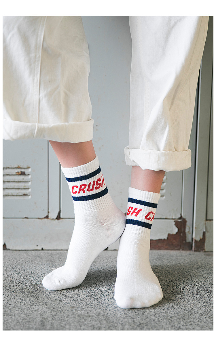 양말 여자의 가을과 겨울 순수한 중간 튜브 거리 면 스포츠 한국 스타일 대학 스타일 스트라이프 영어 편지 짧은 양말 트렌디 한 일본 스타일스토어 가기