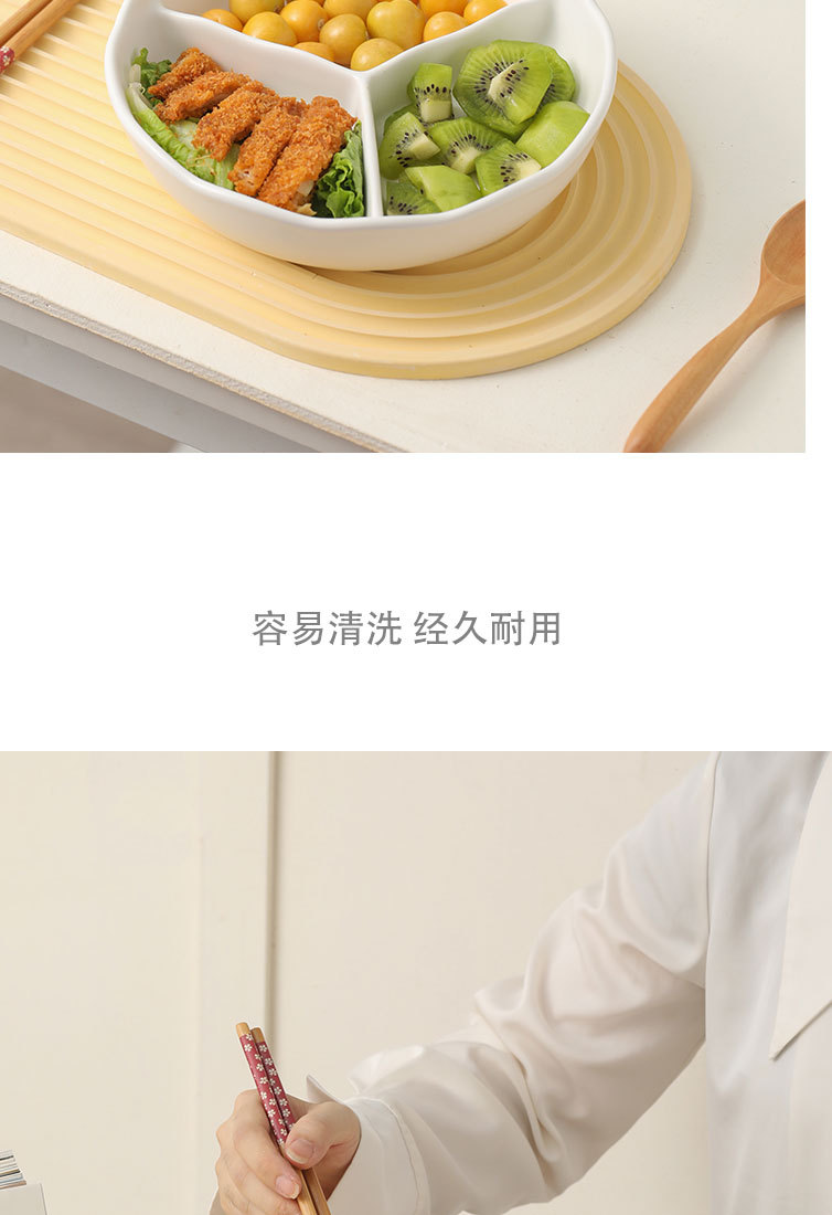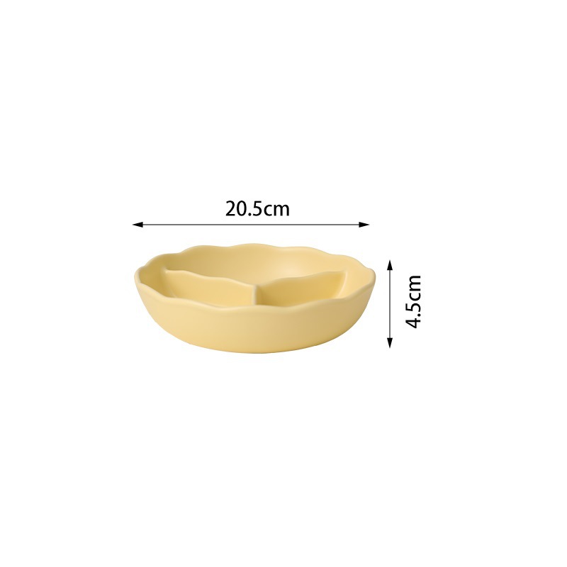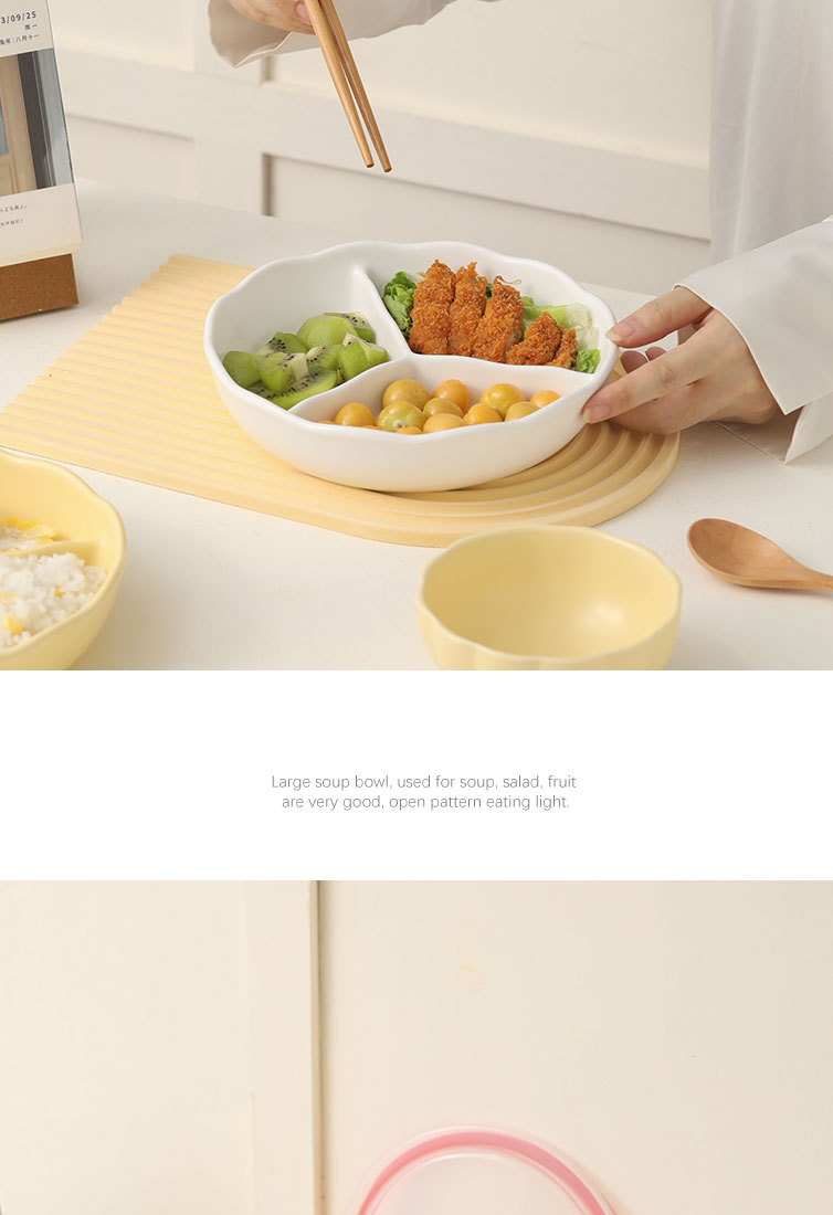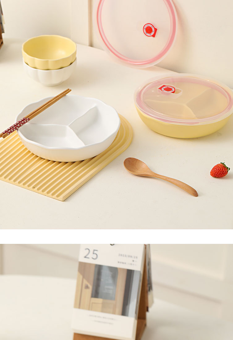 • 우유 노란색 3 칸짜리 접시가 깊어졌습니다 (커버 포함)