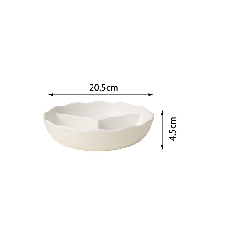 • 우유 흰색 3 칸짜리 접시가 깊어졌습니다 (커버 포함)
