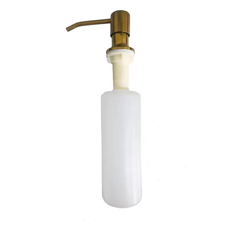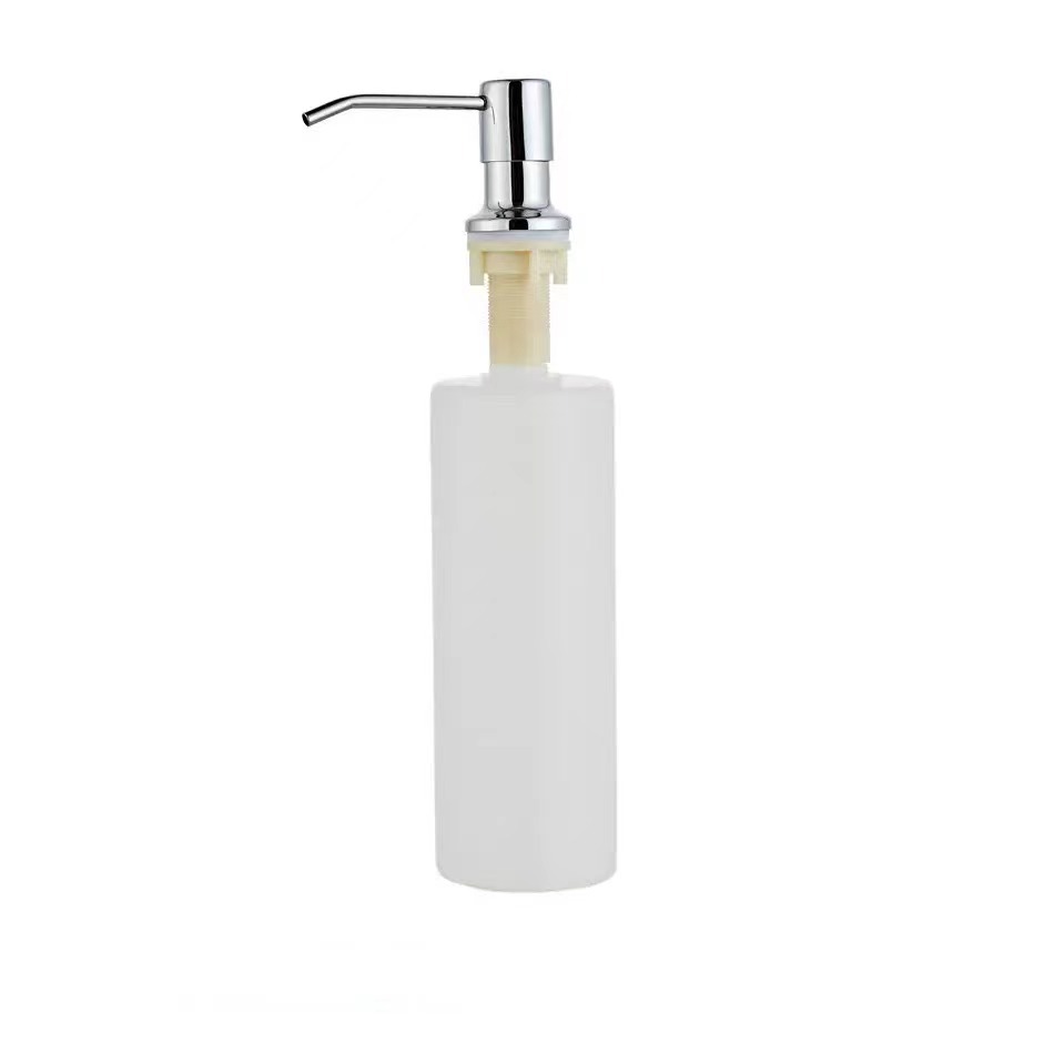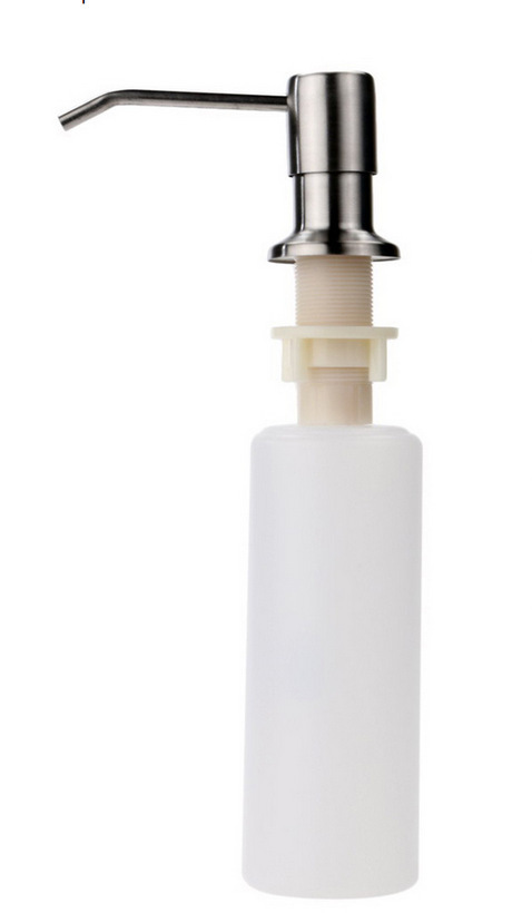 皂液器为304不锈钢按压头(烤漆表面)+ PP材料瓶身(容量300毫升),以及全新ABS材料制作,水槽开孔25mm-36mm的都可以通用 。