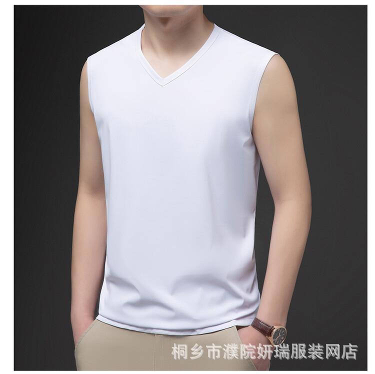 2022新款夏季男式背心V领 修身棉质净版时尚休闲男款男打底衫