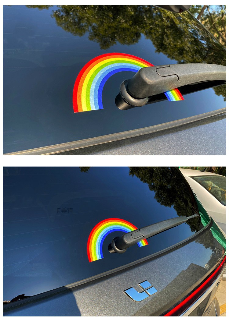 크로스 보더 자동차 스티커 후면 앞 유리 와이퍼 귀여운 무지개 반사 스티커 성격 장식 화려한 데칼스토어 가기