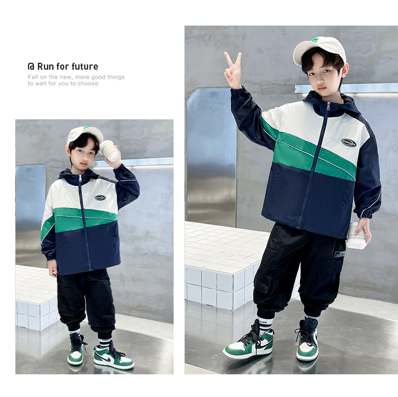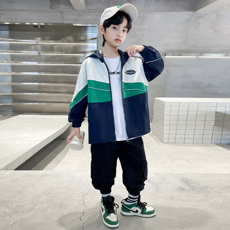 소년 코트 봄과 가을 2023 새로운 스타일 중대형 어린이 인터넷 연예인 멋진 가을 옷 어린이 서양 스타일 야구 세트 재킷 유행