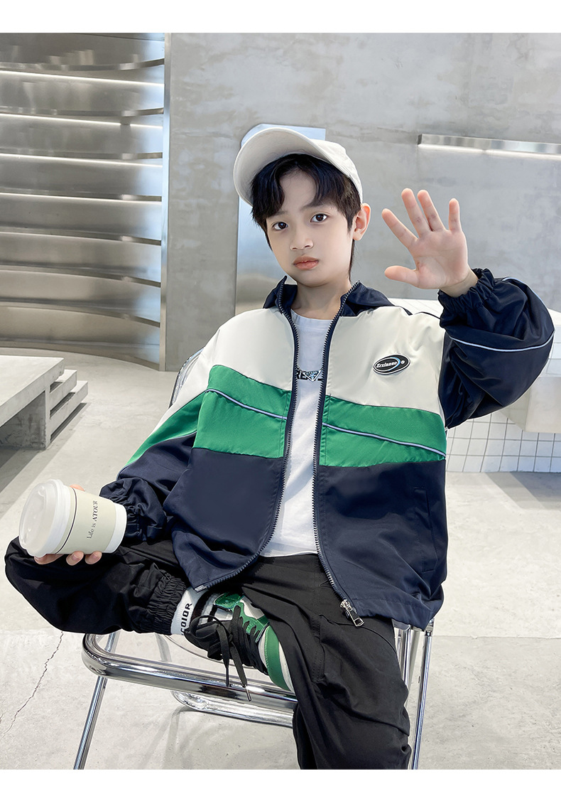 소년 코트 봄과 가을 2023 새로운 스타일 중대형 어린이 인터넷 연예인 멋진 가을 옷 어린이 서양 스타일 야구 세트 재킷 유행스토어 가기