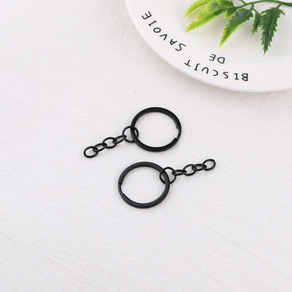 메탈 30mm 블랙 플랫 링 플러스 체인 키 링 diy 수제 재료 펜던트 액세서리 키 체인 키 체인