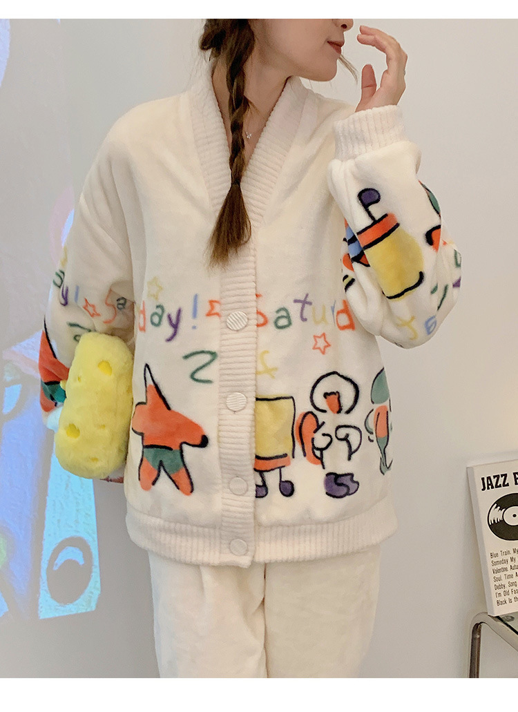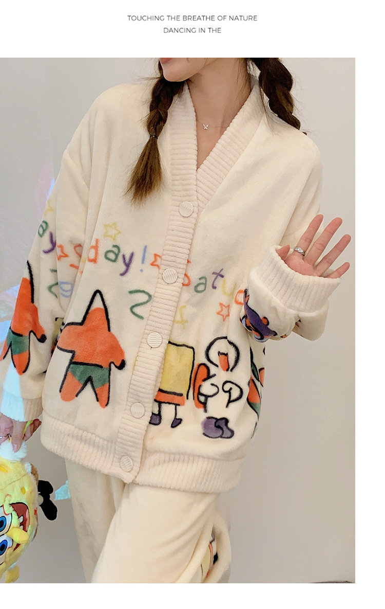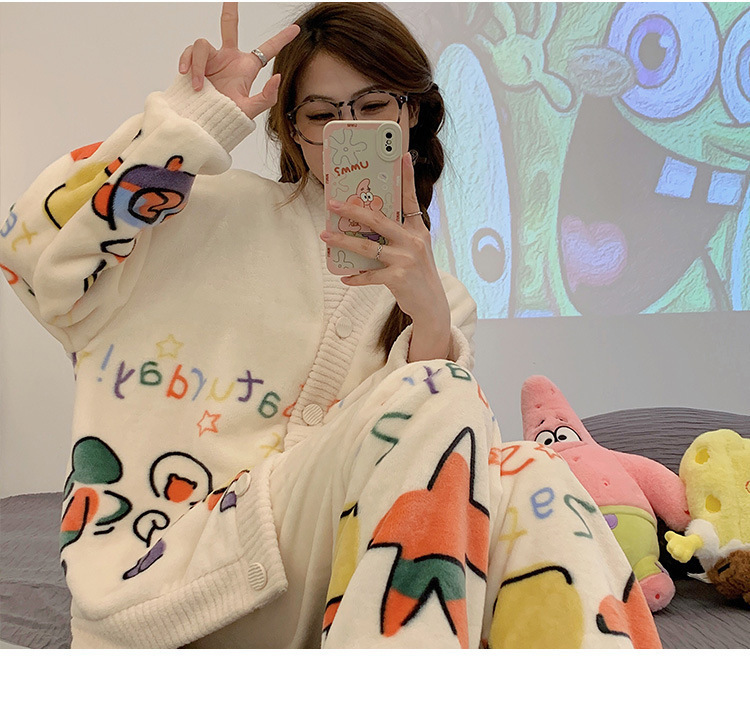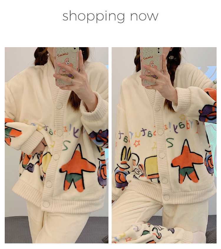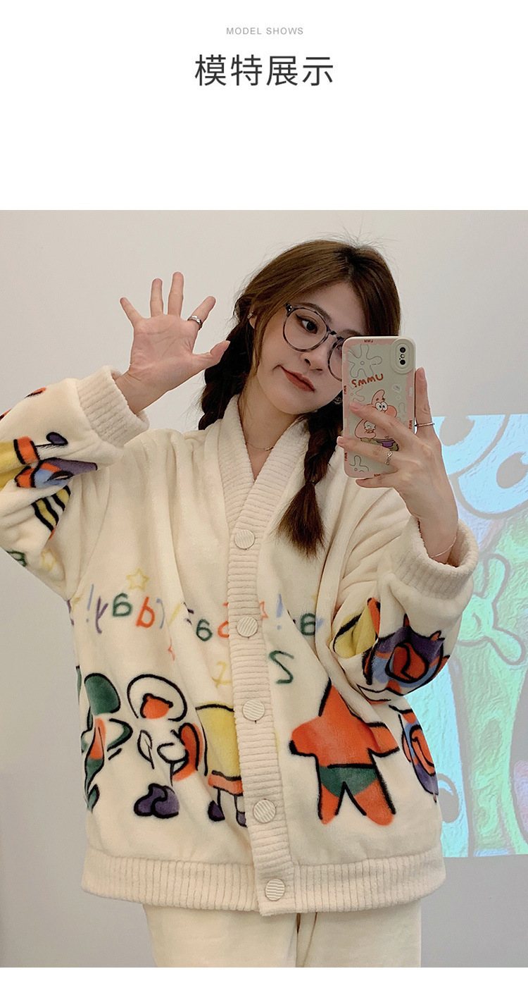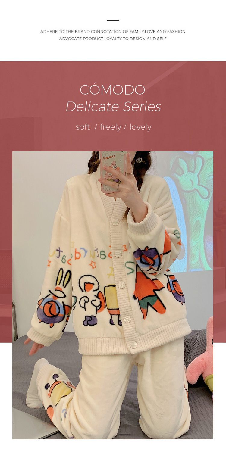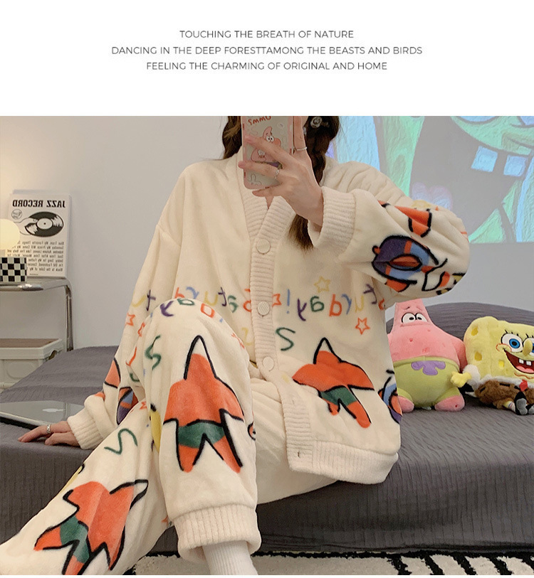 여성용 만화 스타 파자마 세트 2025 가을, 겨울 새로운 스타일 플란넬 두꺼운 긴팔 바지 카디건 홈웨어스토어 가기