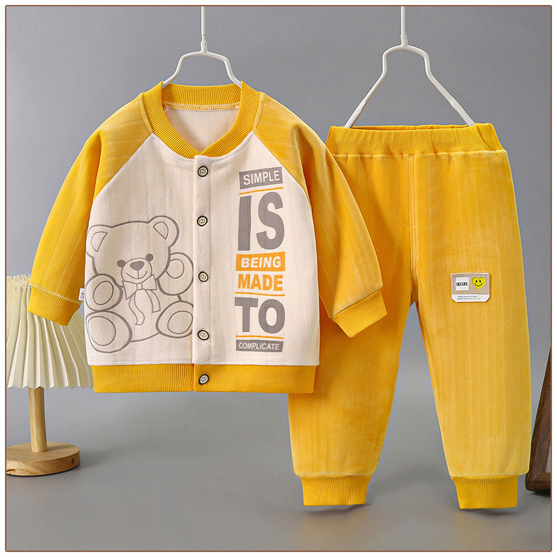 • 양면 벨벳 야구 유니폼 세트 곰 노란색