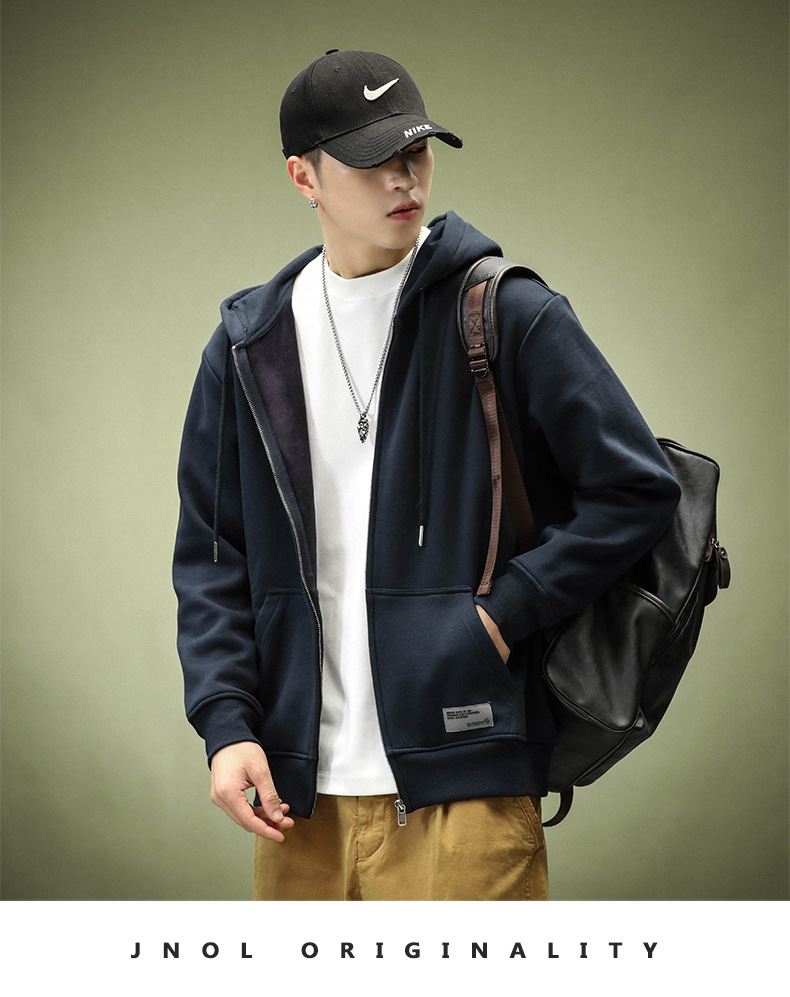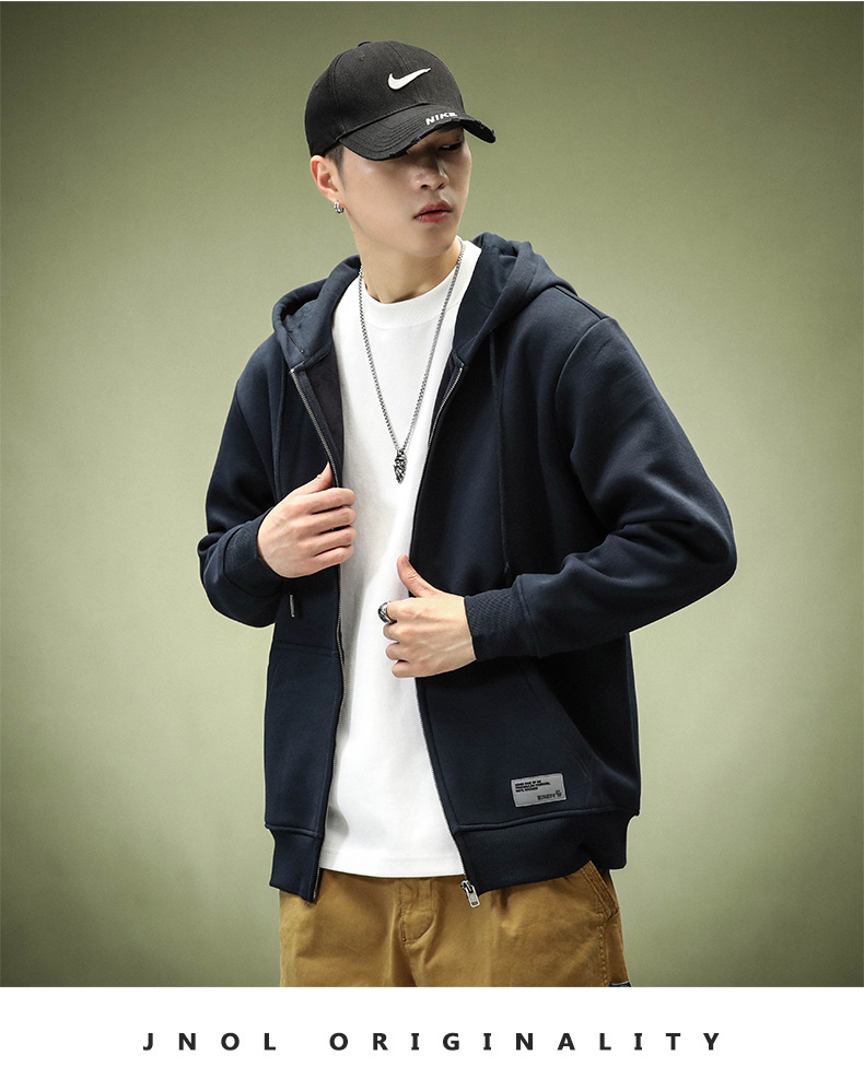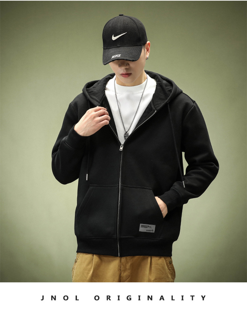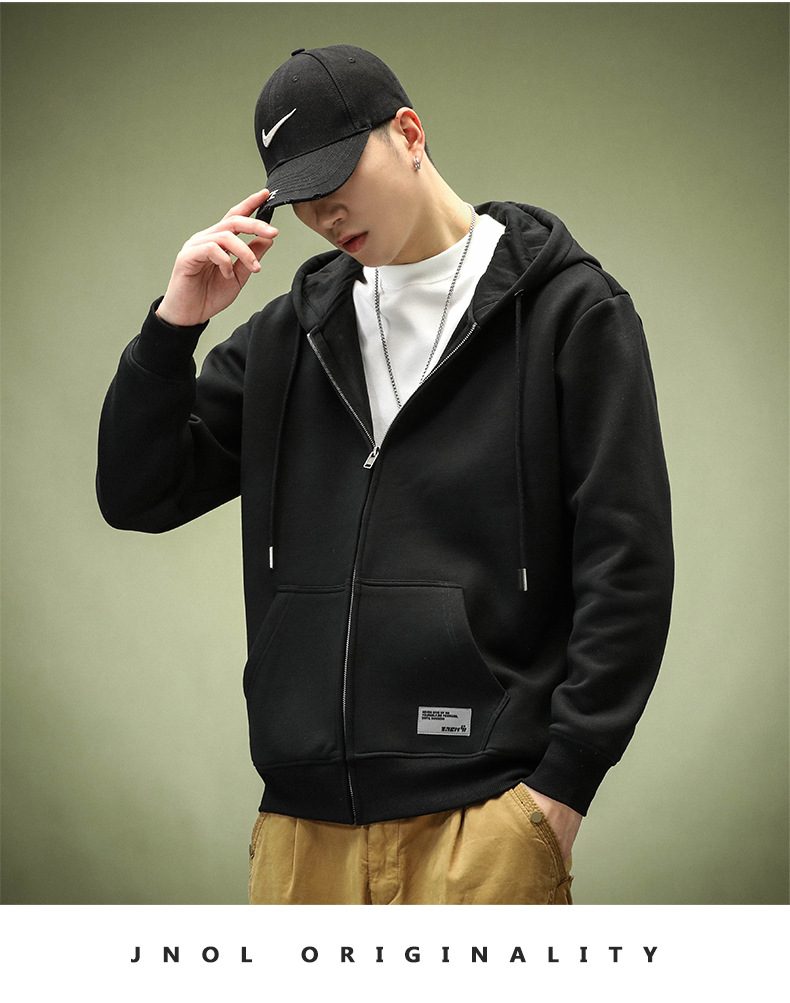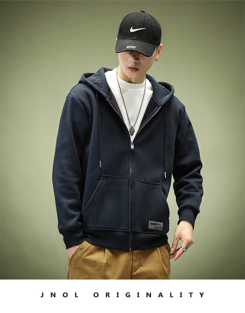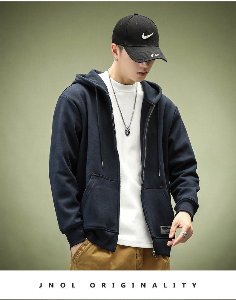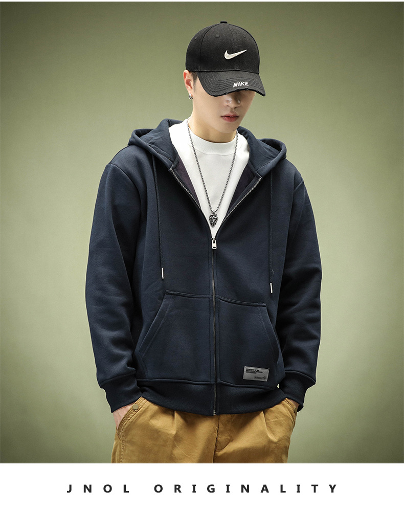 후드 카디건 스웨터 남자의 일본 스타일 봄과 가을 새로운 캐주얼 심플 솔리드 컬러 느슨한 플러스 사이즈 지퍼 스포츠 재킷