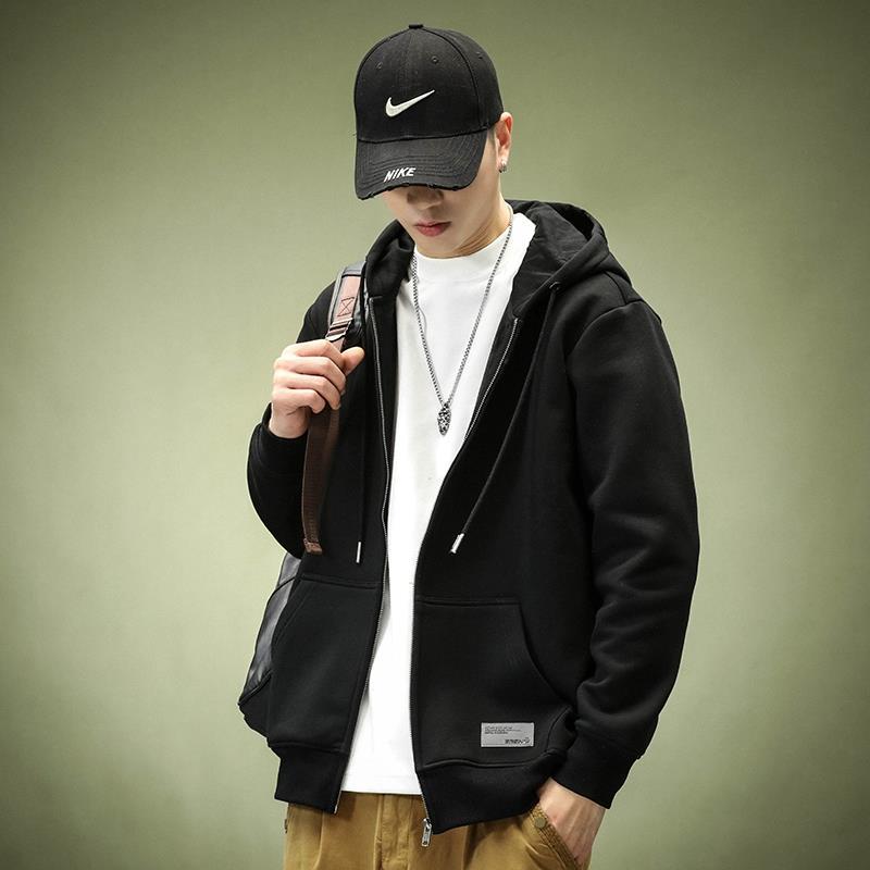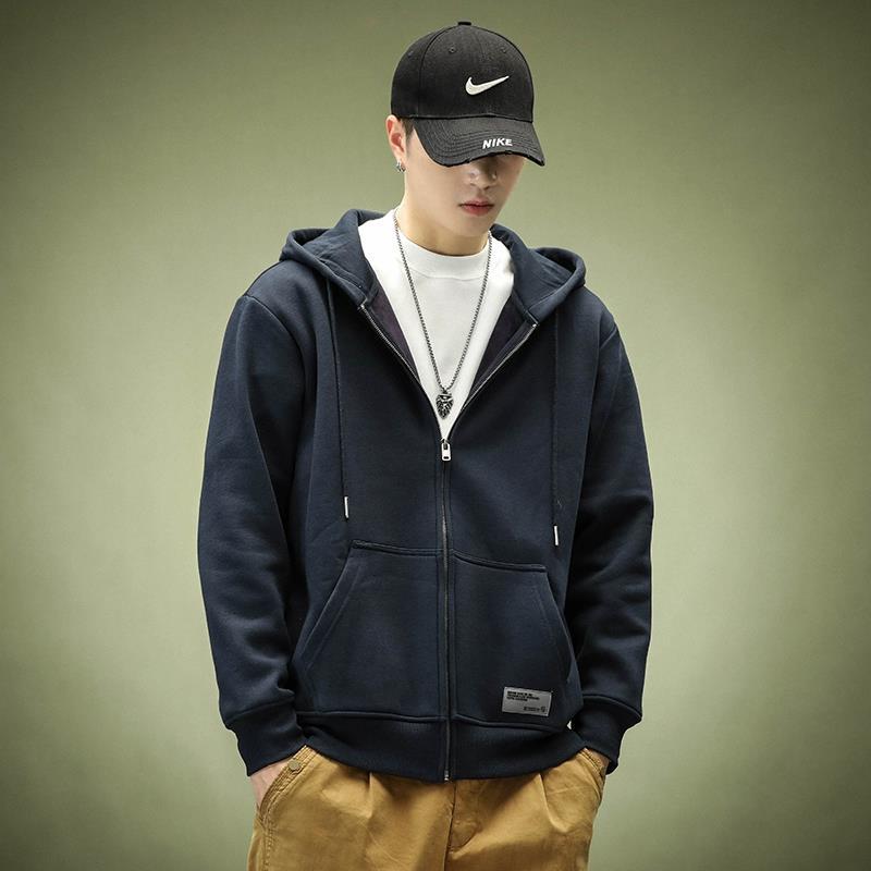 후드 카디건 스웨터 남자의 일본 스타일 봄과 가을 새로운 캐주얼 심플 솔리드 컬러 느슨한 플러스 사이즈 지퍼 스포츠 재킷스토어 가기