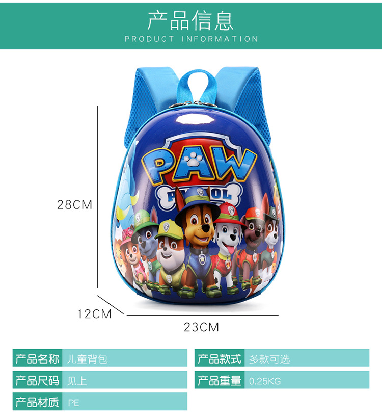 왕 왕 팀 유치원 어린이 어깨 가방 만화 개 순찰 팀 매일 달걀 껍질 가방 아기 만화 배낭 조수스토어 가기