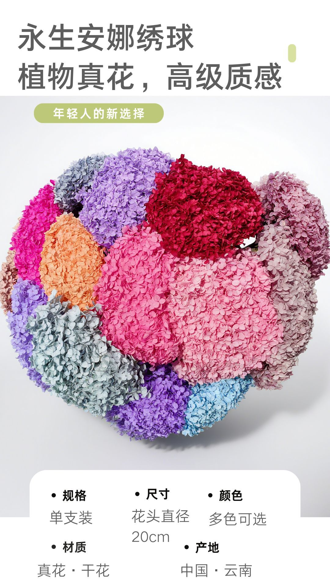 안나 수국 불멸의 꽃, 드라이플라워, 리얼플라워, DIY 에센셜 오일 플라워 소재, 웨딩 엠보싱 장식, 윈난 공장