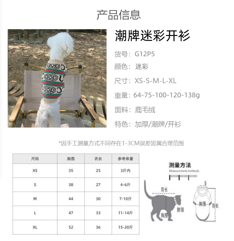 애완 동물 가을과 겨울 패션 브랜드 니트 스웨터 개 고양이 패딩 따뜻한 위장 카디건 보다 곰 공장 재고 도매스토어 가기