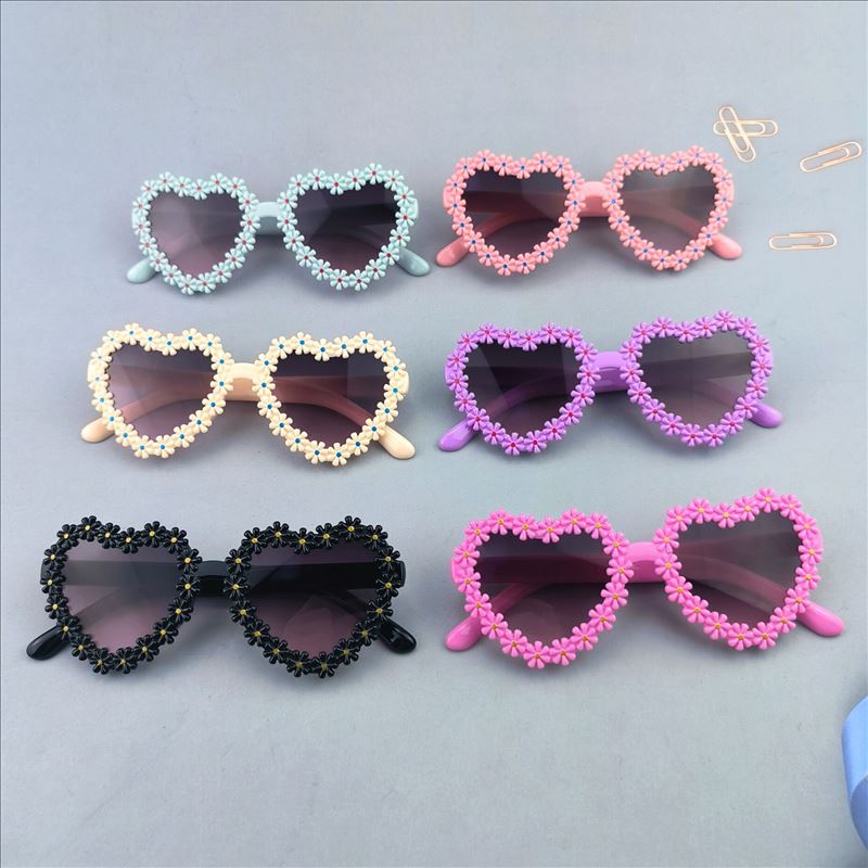 국경 간 도매 어린이 안경 복숭아 심장 사랑 패션 꽃 소녀 선글라스 아기 소년 멋진 아이들